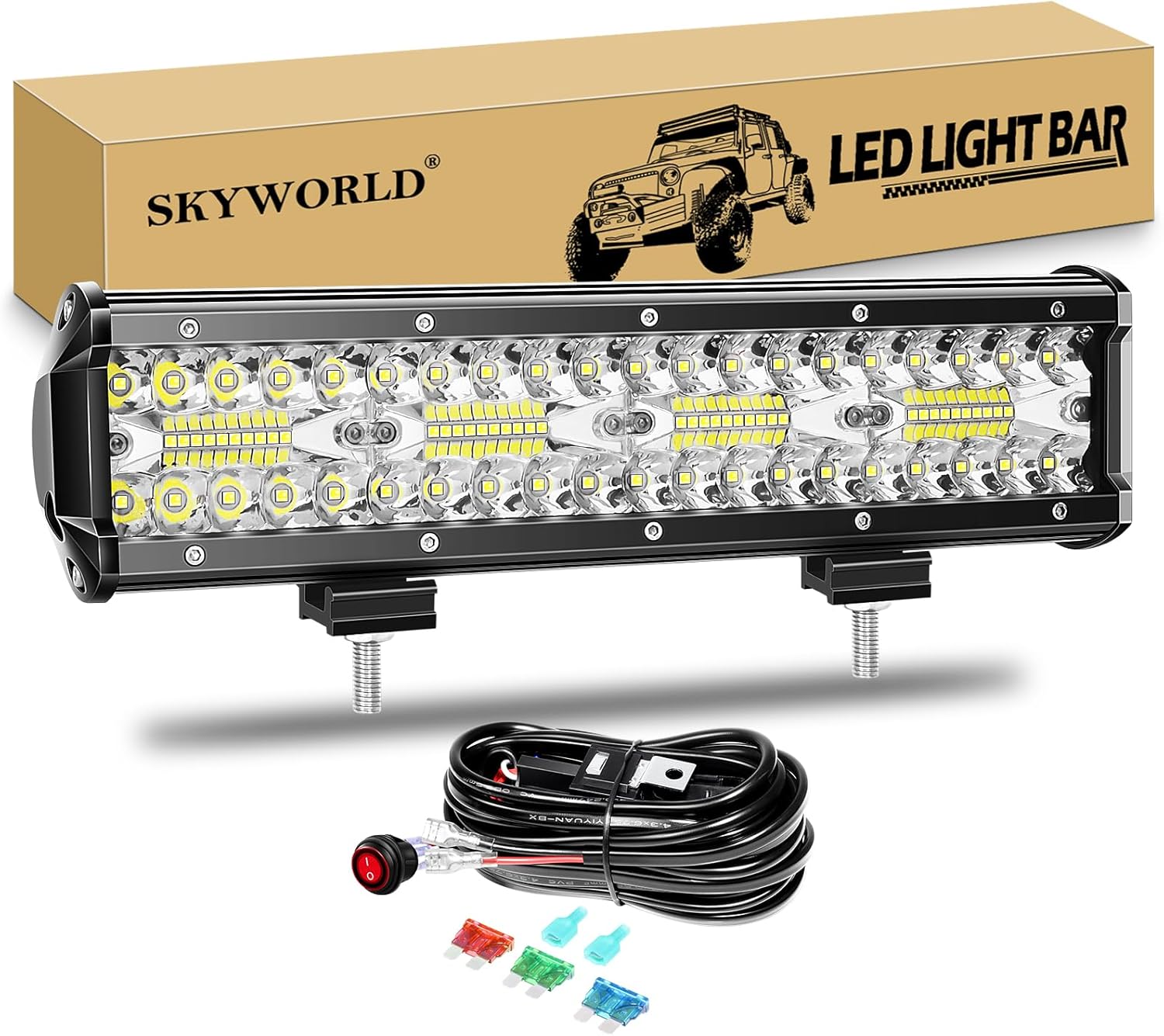 - Hohe Lichtleistung: LED-Chips der Qualitätsfamilie. Geeignete Kombination aus Punktstrahl und Flutstrahl für eine weit verbreitete und weiter entfernte Beleuchtung. Es ist perfekt für 4x4 Fahrzeuge, LKW, Traktor, Mähdrescher, Buggy, auch als