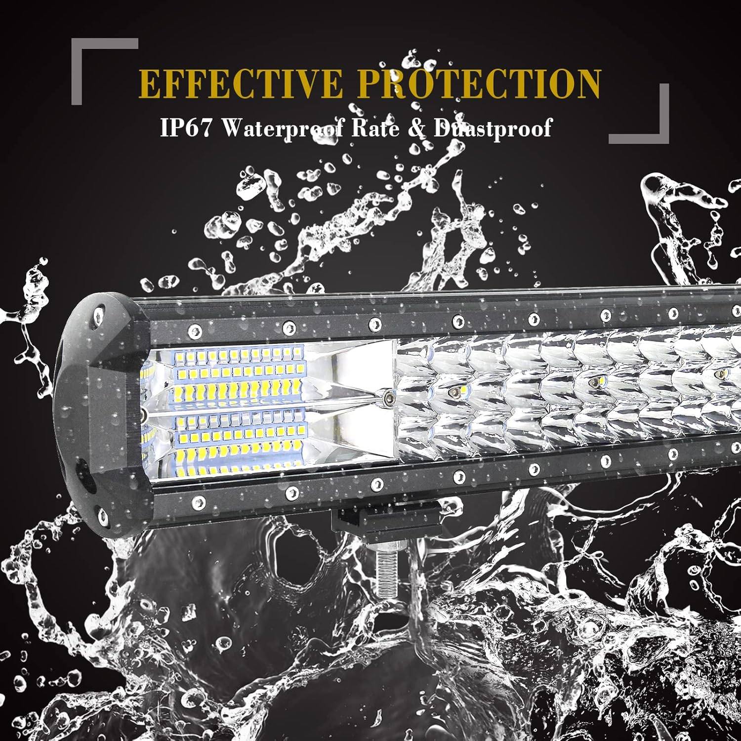 - Paket enthalten: 1 x 7D 20 Zoll Lichtleiste + 1 x 22,8 Zoll Montagehalterung + 1 x Kabelbaum