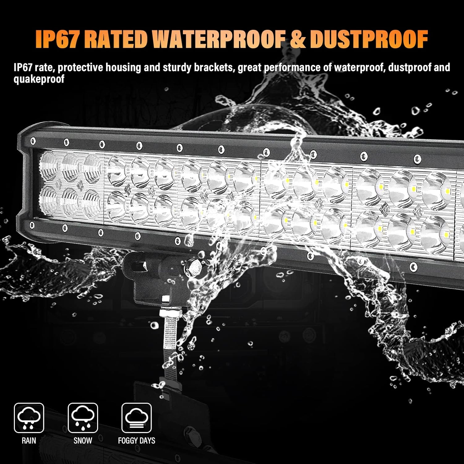 • 【Combo Beam Design】 - Spot & Flood Combo Beam. Leistungsstarke LED-Lichtleiste, Punktstrahl für grosse Bestrahlungsentfernung, Flutstrahl für hellen und weiten Sichtbereich. Der Combo Beam bietet Ihnen einen hervorragenden visuellen Effekt.