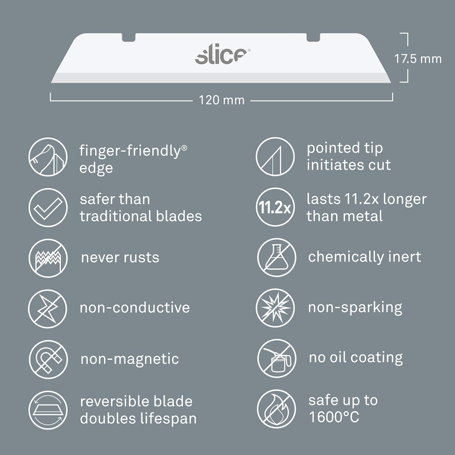 - Kompatibilität – Slice Craft Klingen wurden entwickelt, um ausschliesslich mit Slice Griffen für optimale Sicherheit und Funktion zu arbeiten – #10559 / #10560 Industriemesser, #10599 Langgriff-Schaber.
