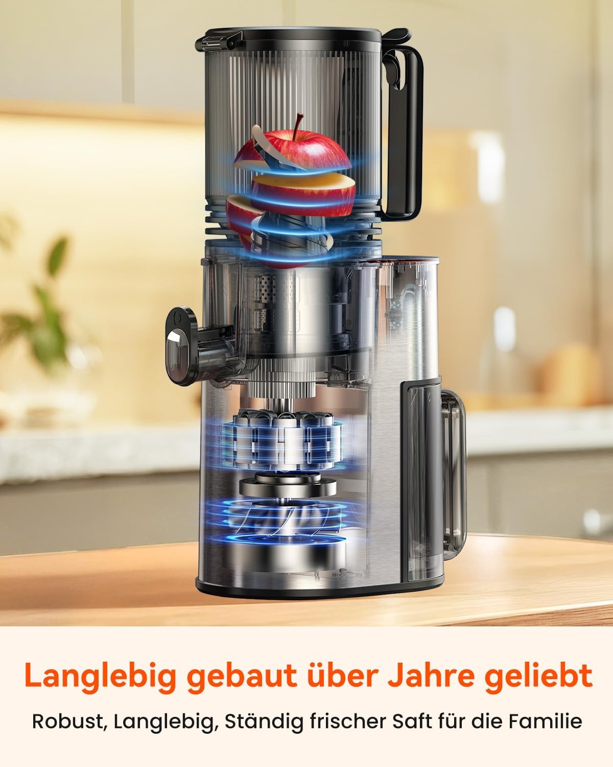 - Langlebig und beliebt: Edelstahl-Entsafter mit 250W Motor für 30 Minuten Dauerbetrieb. Frischer, stetiger Saft für die ganze Familie, mit Überhitzungsschutz für mehr Sicherheit.