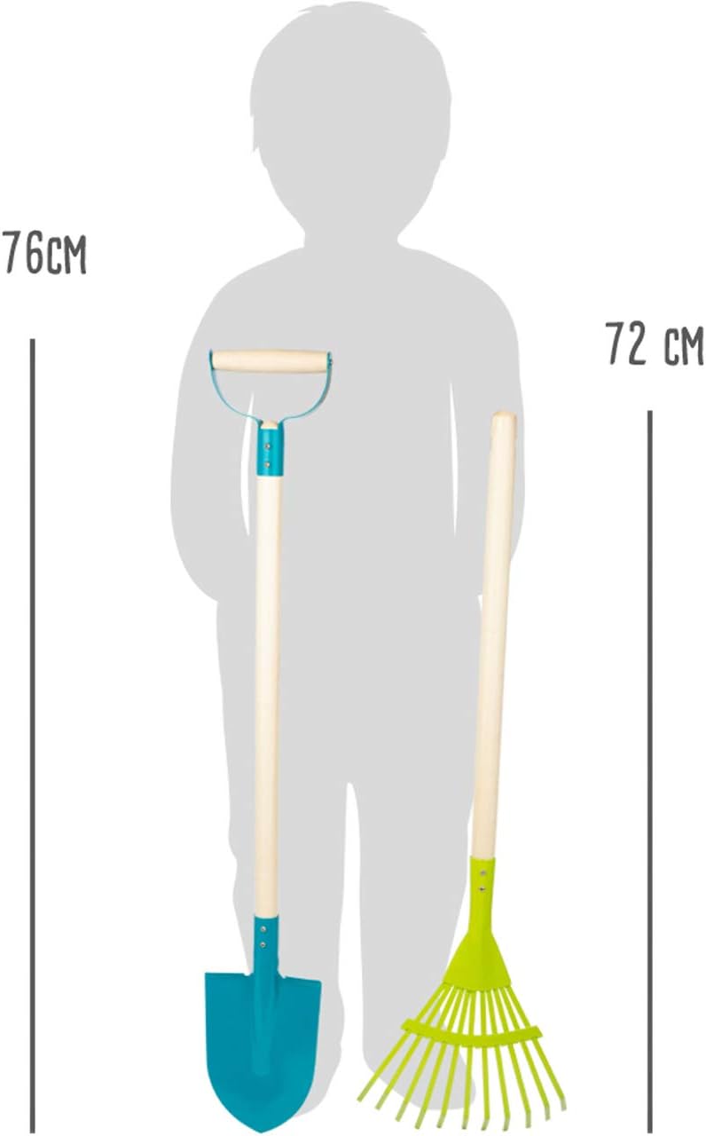 - Der Rechen und der Spaten mit Rundspitze im kinderfreundlichen Design kommen in einer für Kinder angemessenen Grösse und sind somit leicht zu händeln