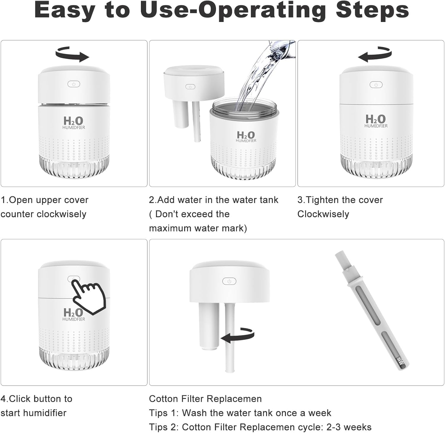 - ✅Geräumiges Fassungsvermögen und leistungsstarke Zerstäubungsfähigkeit: Ultrafeine Nebeltröpfchen, die durch Ultraschallvibration erzeugt werden, und ein grosser 500-ml-Wassertank, um eine optimale Luftfeuchtigkeit zu erreichen. Konzipiert für