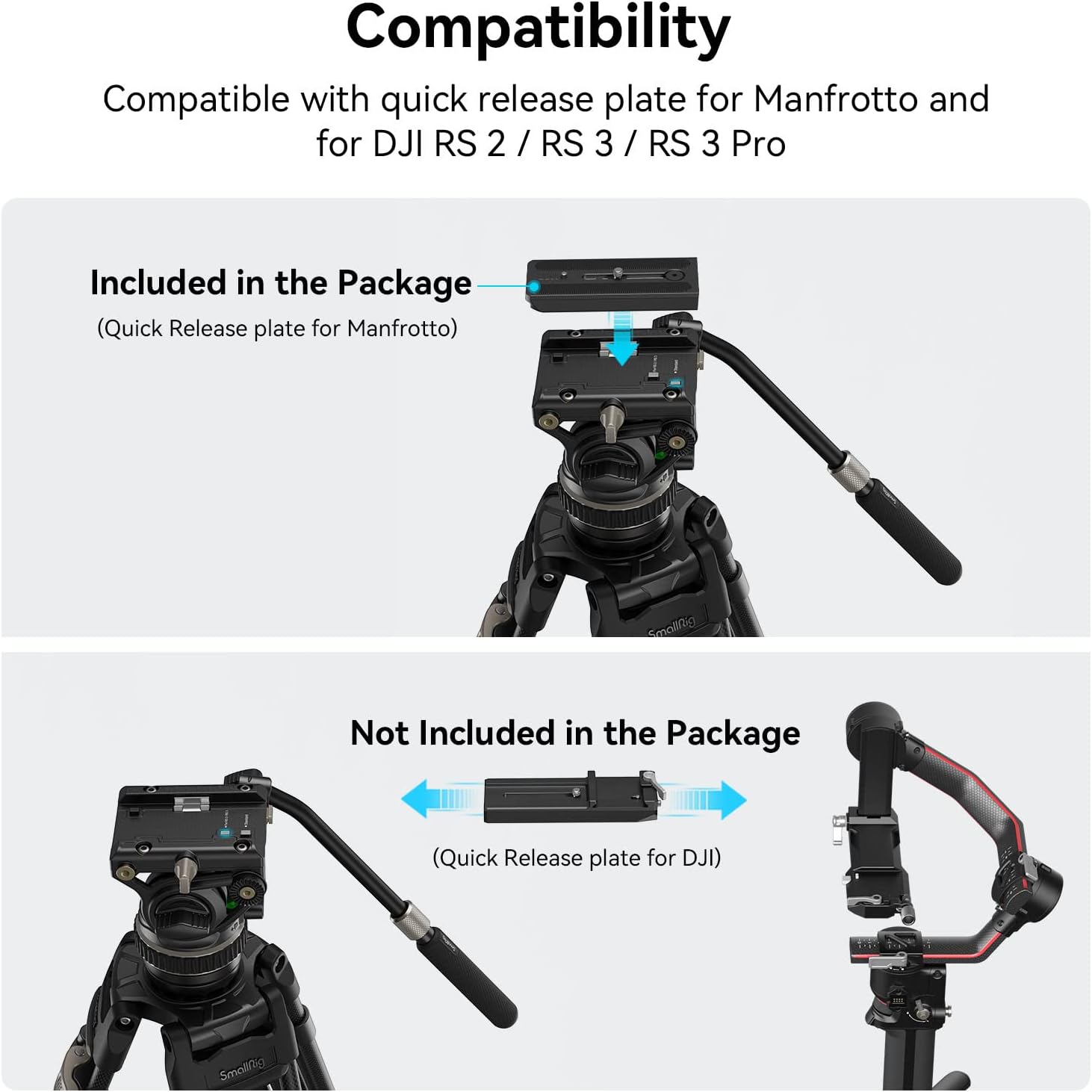 - Schnellmodusumschaltung: Der schwere Fluidkopf nimmt eine neu gestaltete Schnellwechselplattenhalterung mit Schnappverschluss an und kann eine schnelle Montage realisieren. Ausserdem ist es kompatibel mit DJI RS 2 / RS 3 / RS 3 Pro Schnellwechselplatte