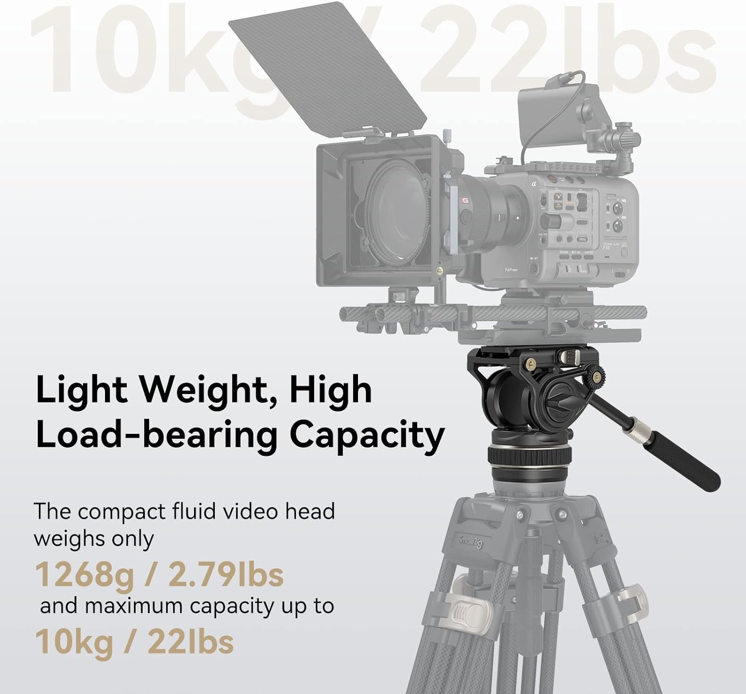 - Maximale Belastung bis zu 10 kg / 22 Ibs: Die maximale Belastbarkeit dieses Stativkopfs kann bis zu 10 kg / 22 Ibs betragen. Und der kompakte Fluid-Videokopf wiegt nur 1268 g / 2,79 lbs, hat eine Höhe von 140 mm / 5,51 Zoll und einen Bodendurchmesser