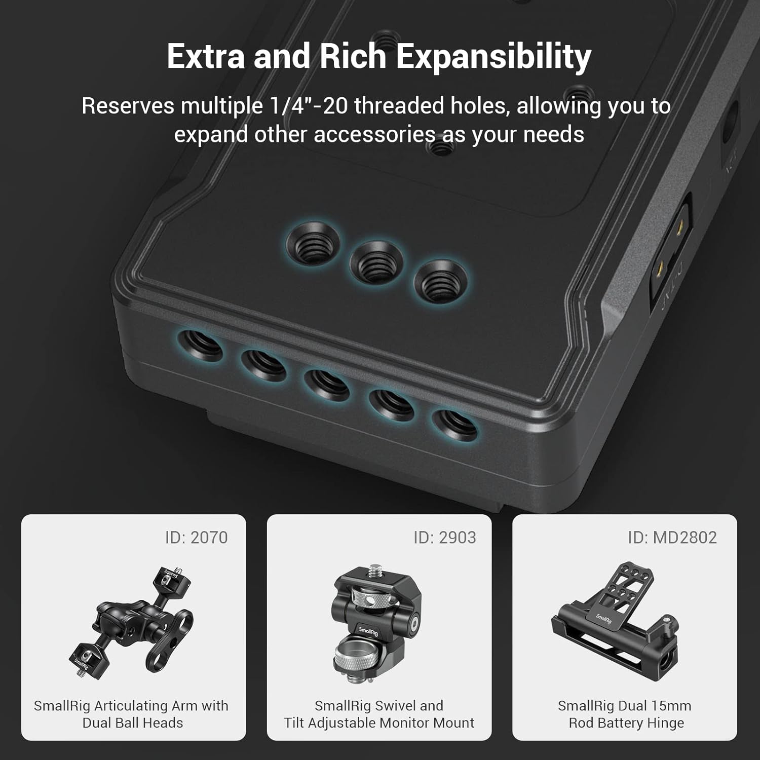 SMALLRIG V-Mount Akkuplattenadapter mit doppelter 15-mm-Stabklemme, für spiegellose/DSLR-Kamera, für