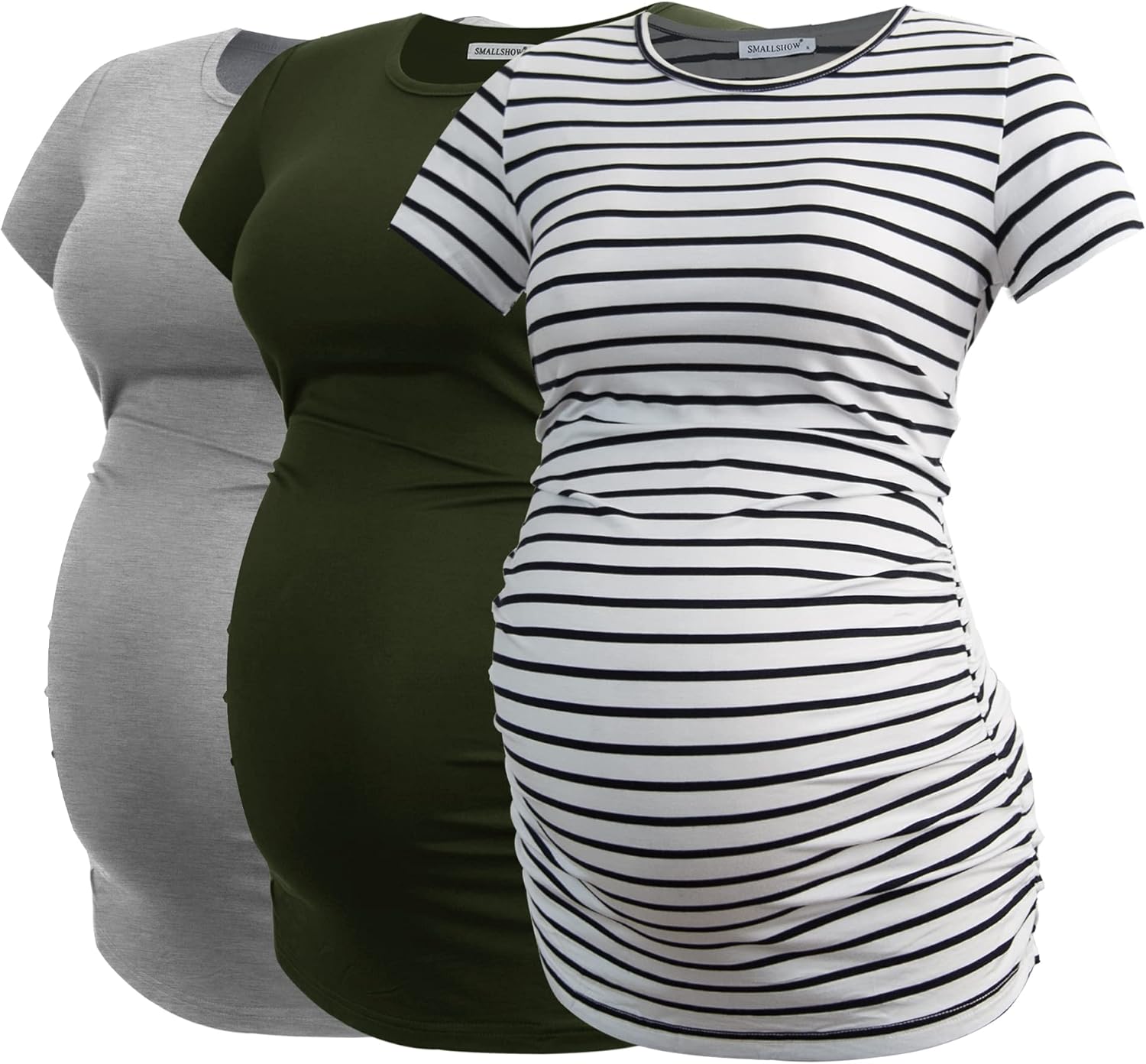 - Features: Rundhalsausschnitt, kurze Ärmel, weicher Stoff, Rüschen an den Seiten für mehr Bauchraum.