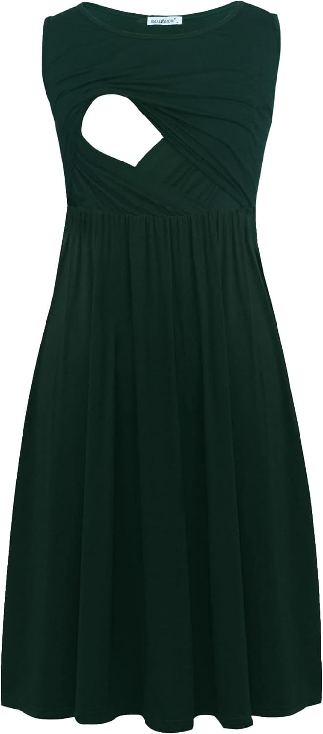 Smallshow Ärmelloses Patchwork-Umstandskleid mit Taschen für Frauen M Dunkel Grünen, M Dunkel Grünen