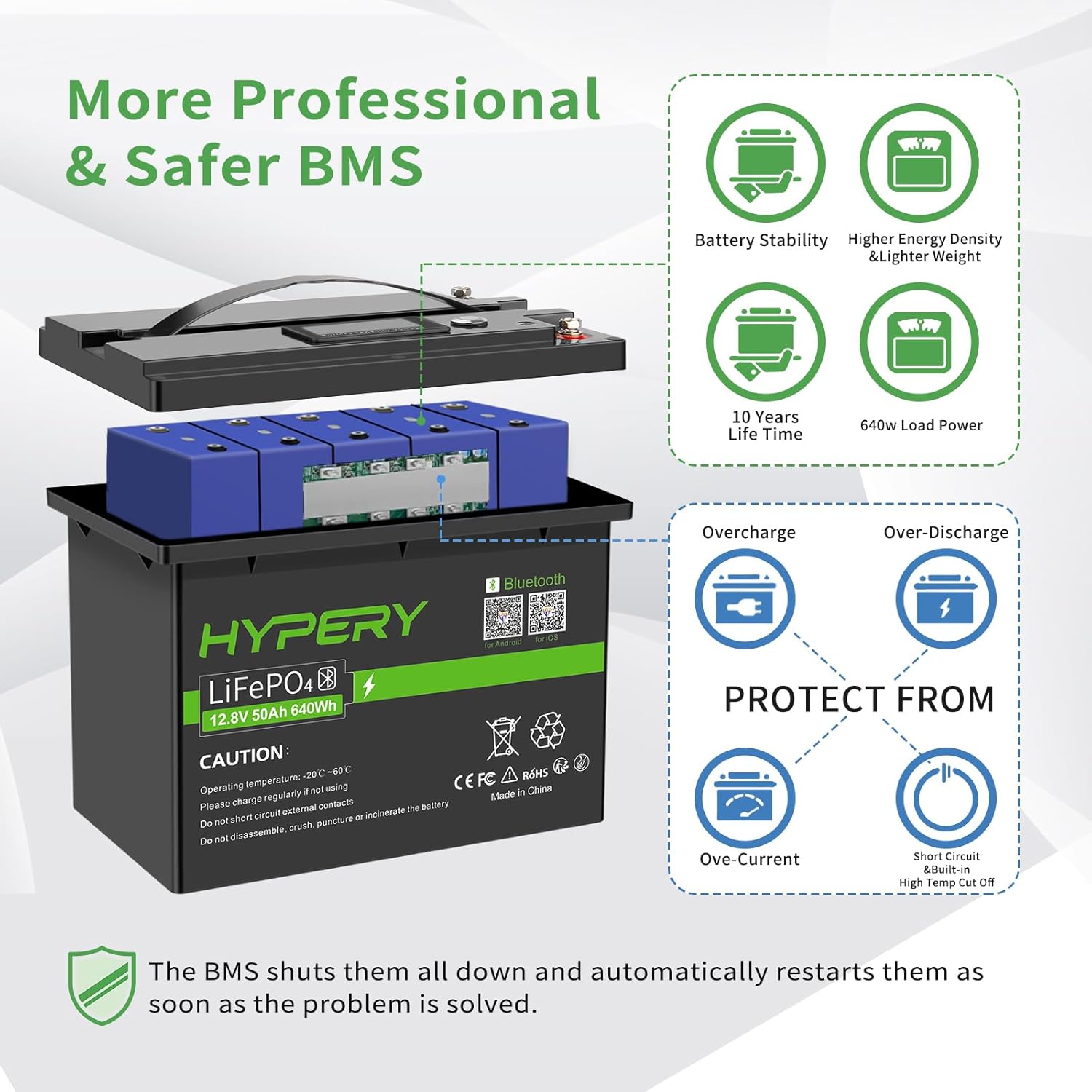 - 🔋⚡【Smarter & Sicherer】Unsere LiFePO4-Batterie verfügt über ein eingebautes BMS (Battery Management System), das die Batterie nicht nur vor verschiedenen Anomalien schützt, sondern auch den Lade-/Entladevorgang intelligent überwacht, um eine