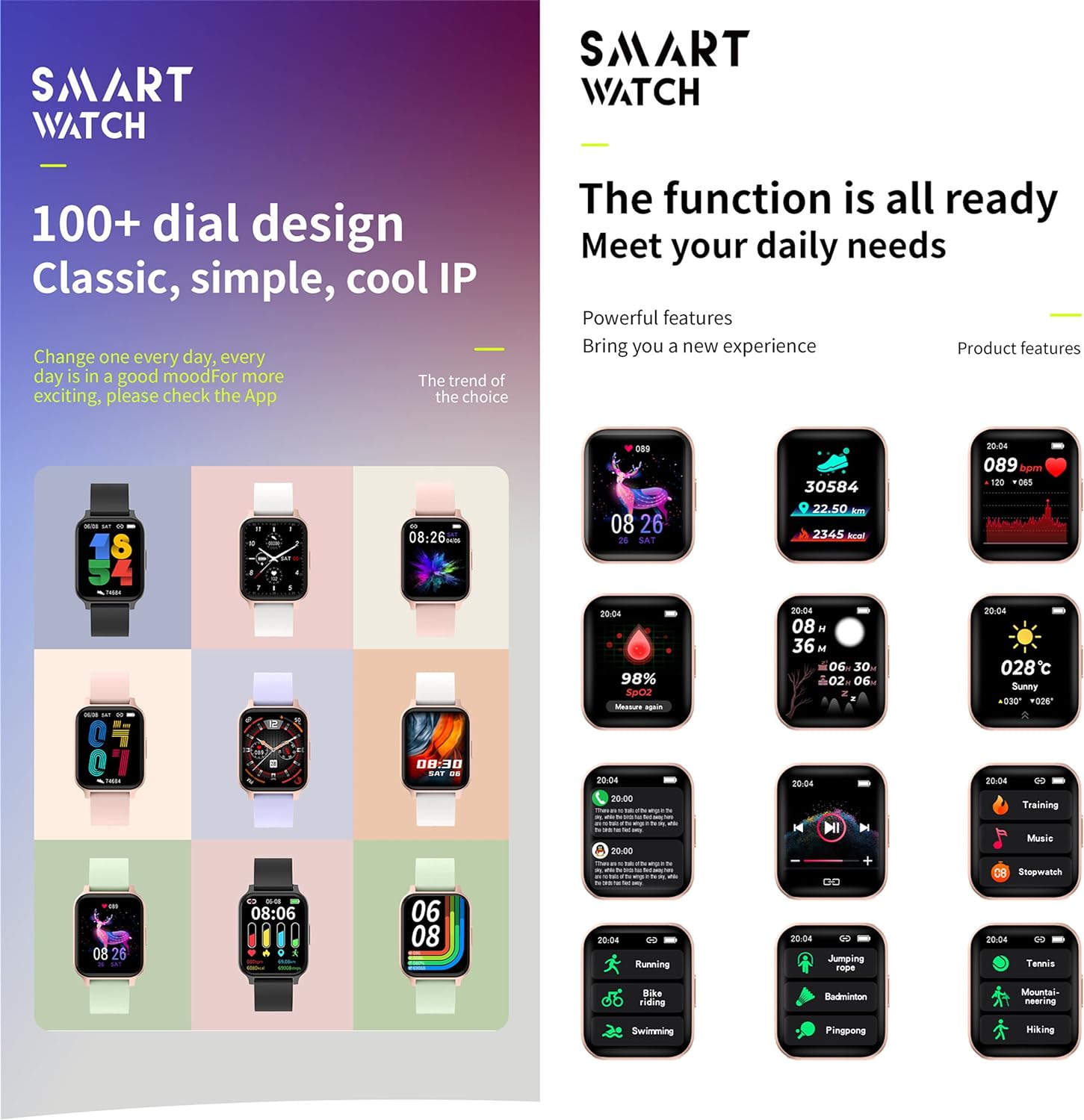 - ⌚【Mehr praktische Funktionen】 Die Smartwatch für Damen kann als Aktivitäts-Tracker verwendet werden, verfügt über Multi-Sport-Modus. Schlafüberwachung, Herzfrequenz, Schritte und Kalorienverbrauch, Gesundheitserinnerung, Anruferinnerung,