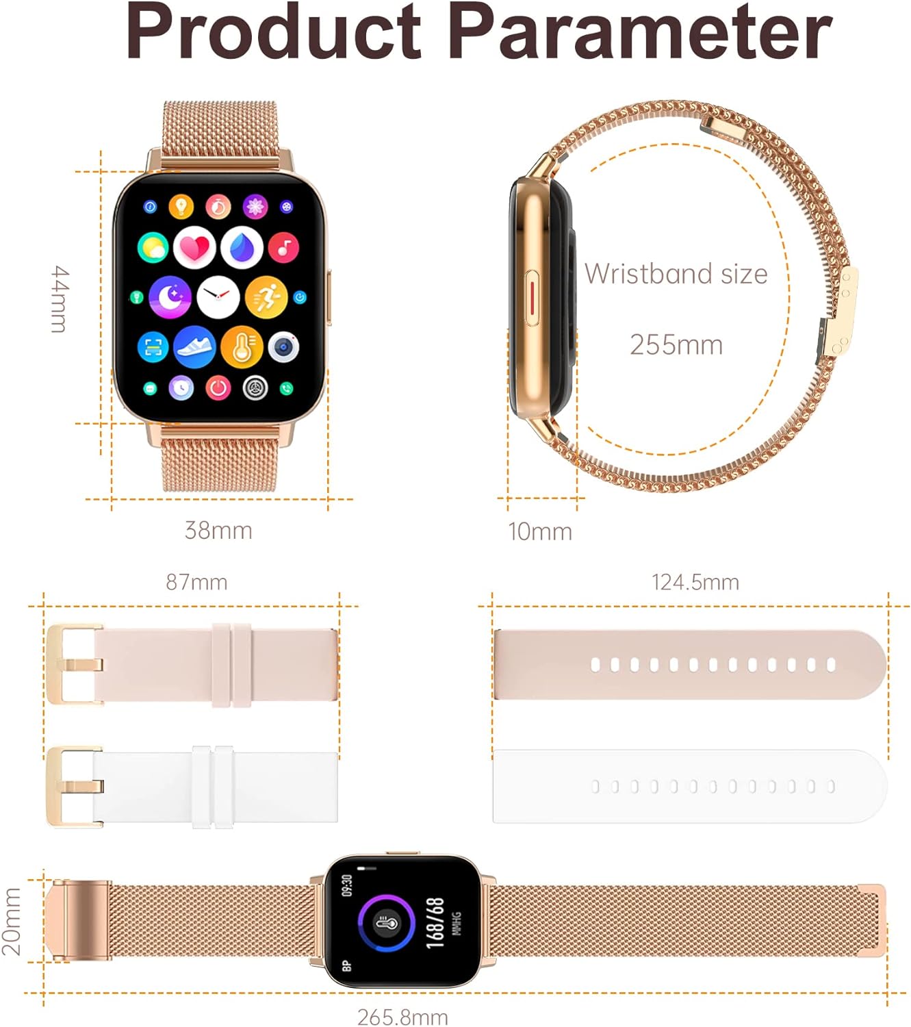 - Praktische Funktionen: Unsere Smartwatch hat auch viele kleine Funktionen, zum Beispiel Wecker, Wettervorhersage, Sitzerinnerung, Wassererinnerung, Atemtraining, Musiksteuerung, Kamera-Steuerung, Nicht-Stör-Modus. Die Uhr kann 3-7 Tage nach 2,5 Stunden