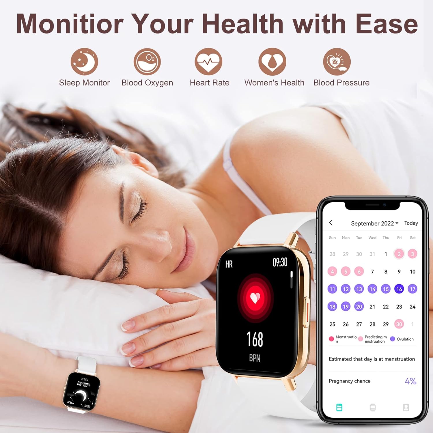 - Ganztägige Gesundheitsüberwachung: Die Uhr verwendet einen Hochleistungs-Gesundheitssensor, um die Herzfrequenz, Blutsauerstoffsättigung und den Blutdruck zu überwachen. Wenn Sie die digitale Uhr zum Schlafen tragen, wird sie automatisch Ihren Schlaf