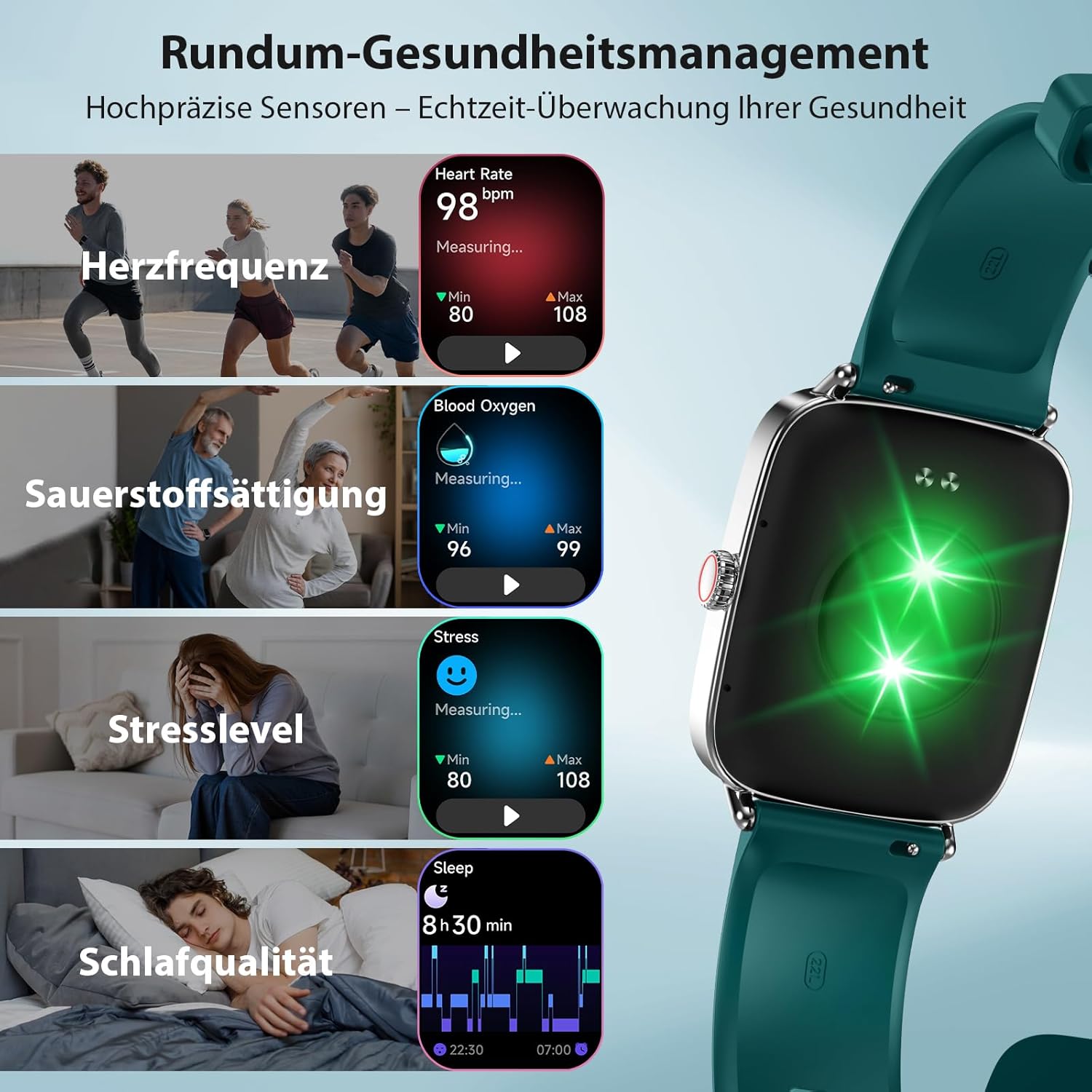 • Umfassende Gesundheitsüberwachung: Die Damen Herren Smartwatch verwendet fortschrittliche Sensoren für präzise Überwachung. Sie kann Ihre Gesundheitsdaten (SpO2, Herzfrequenz, Stress) kontinuierlich 24 Stunden lang messen. Darüber hinaus überwacht