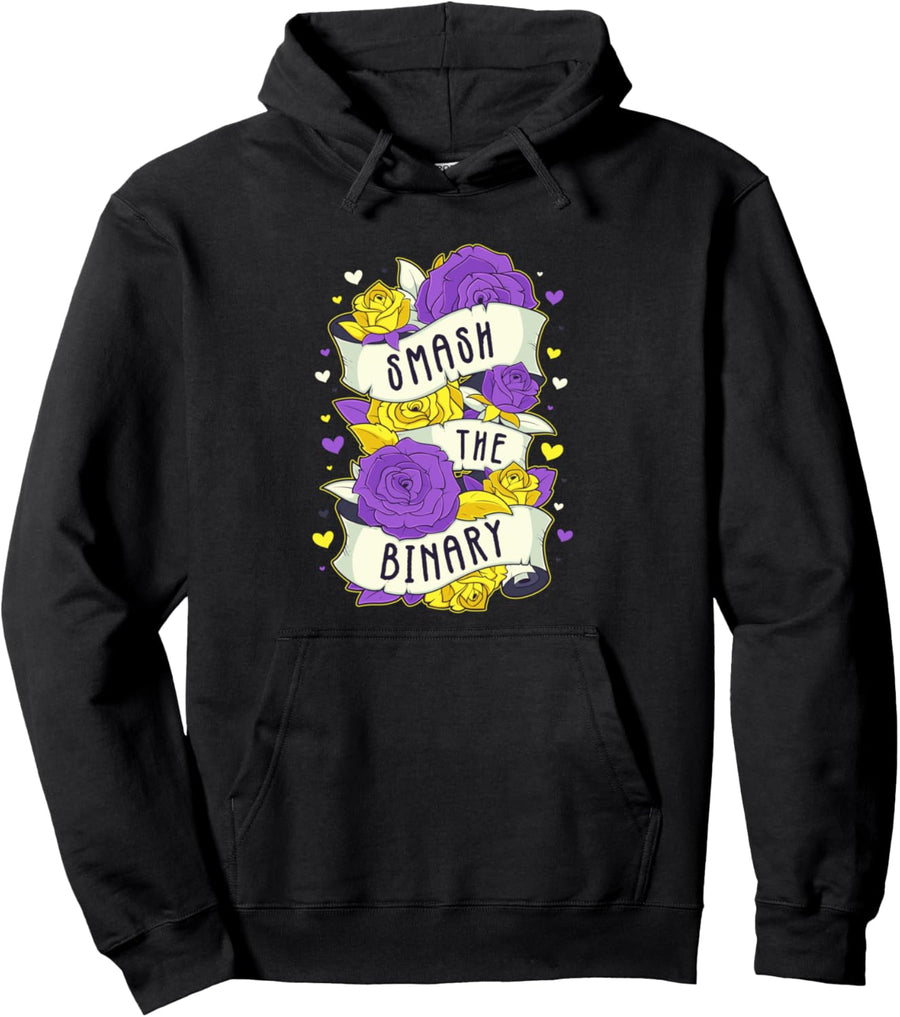 PRODUKTBESCHREIBUNGEN Smash the patriarchy and smash the binary with this cute floral design featuring a graphic of roses in the dolors of the non-binary pride flag and retro scroll. Perfect if you are gender fluid or a nonbinary ally. Smash the Binary Non-Binary Genderqueer LGBTQ Pride Month design perfect for an LGBT Pride parade or festival.