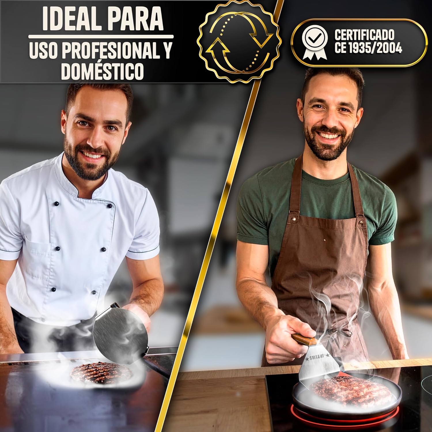- 🔁 VIELSEITIG AUF PLANCHA, PFANNE ODER GRILL | Nutze dein Smash Burger Kit auf jeder Oberfläche: Grill, Pfanne, Plancha oder BBQ. Ideal auch für Bacon, Zwiebeln oder Toastbrötchen.