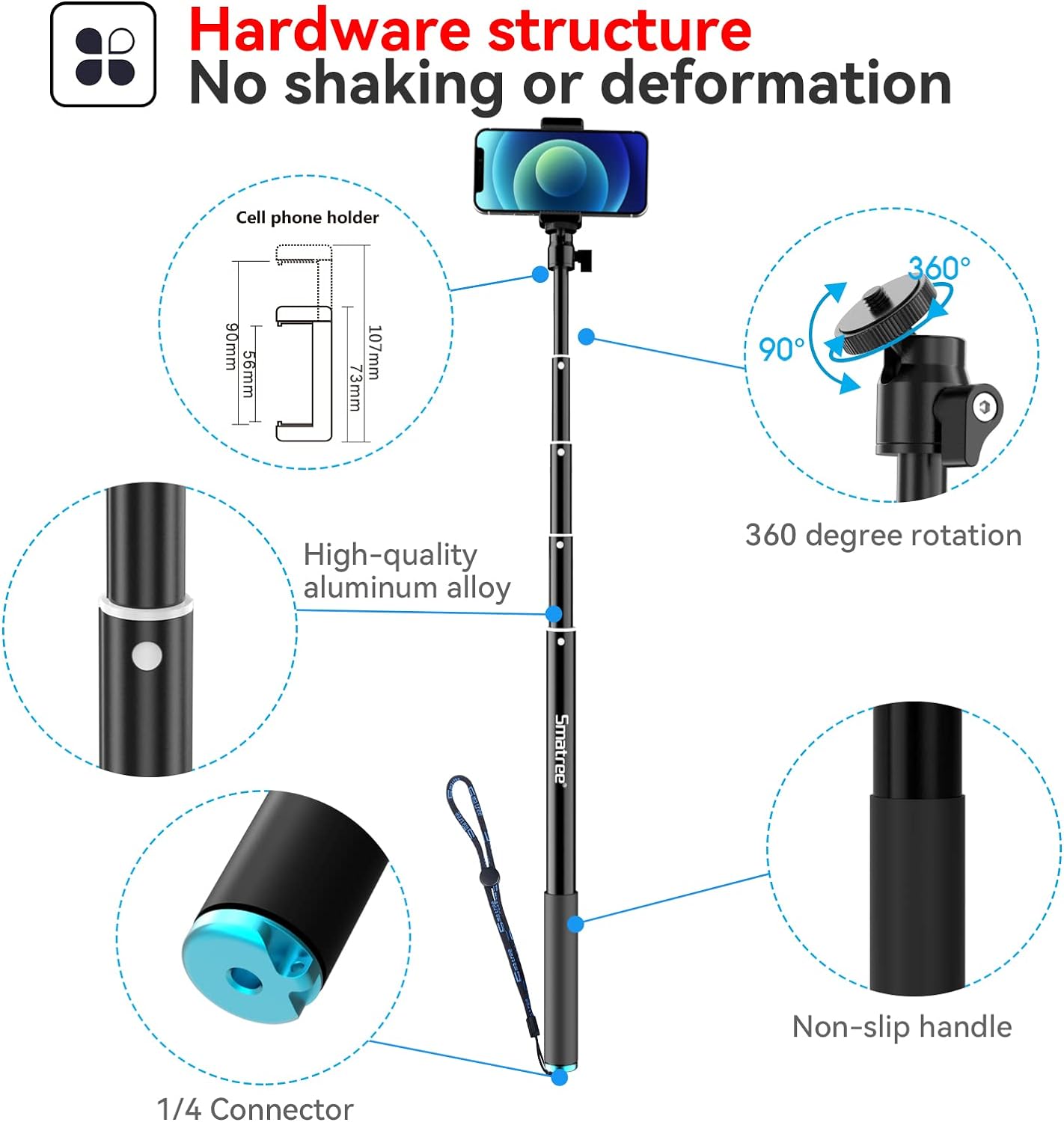 - Einstellbare Länge:Die Länge der ausziehbaren Stange kann von 17"-70" (43-178cm) eingestellt werden, um Ihre Bedürfnisse zu erfüllen.5 Längeneinstellungsmodi, um sich an eine Vielzahl von Szenarien anzupassen.