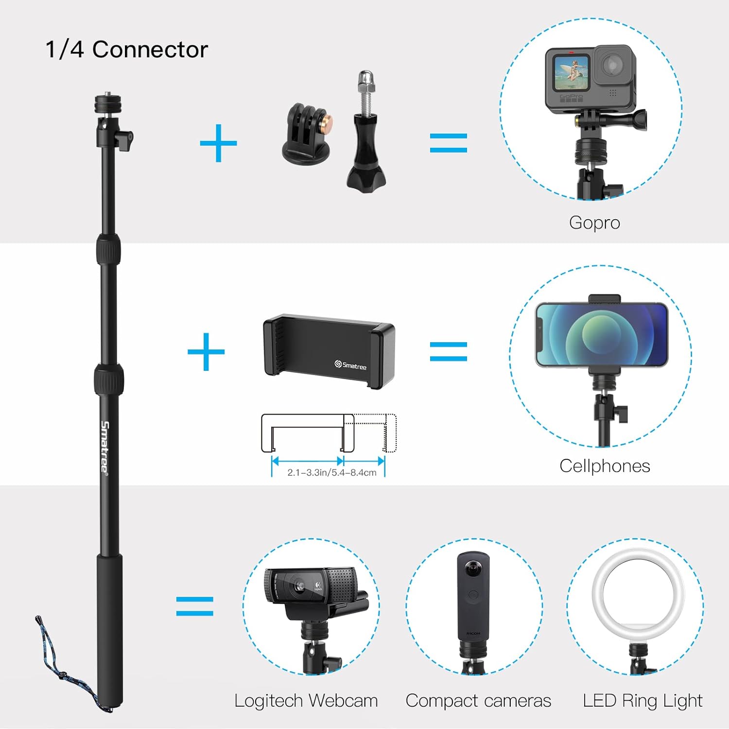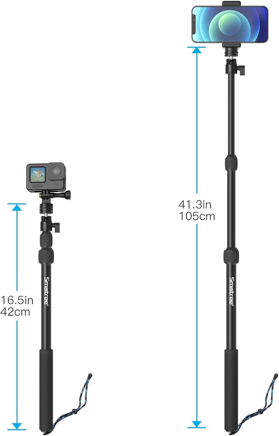 - Einstellbare Länge: Der Teleskop-Selfie-Stick Smatree DS1 ermöglicht eine schnelle Längenanpassung von 15,8″ bis 40,5″ und bietet den optimalen Aufnahmeeffekt.
