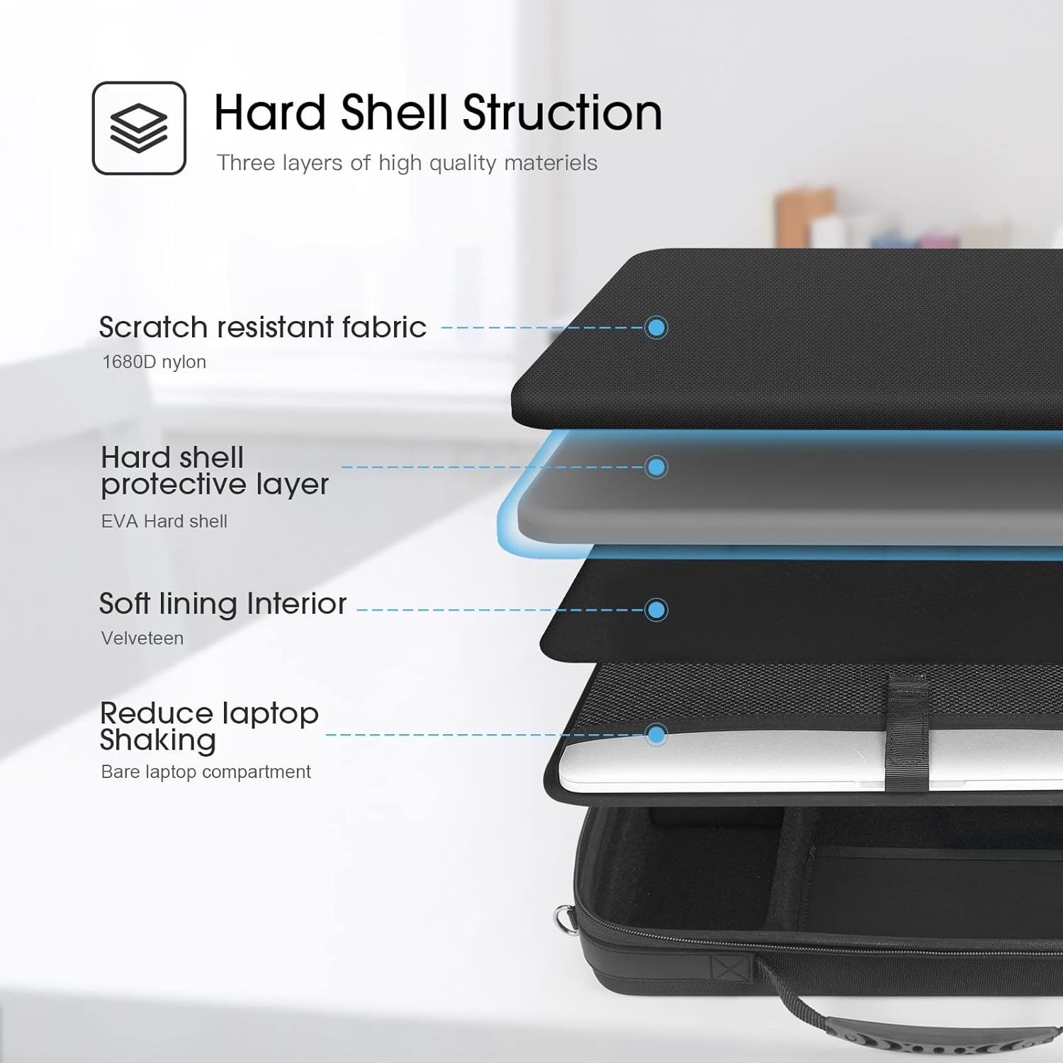 - AUSGEZEICHNETER SCHUTZ: Das harte EVA-Aussenmaterial schützt Ihren Laptop und Ihr Zubehör vor Stössen und Kollisionen, die Innentasche schützt sie vor Kratzern. Unterteilte Fächer halten Ihre Ausrüstung organisiert.