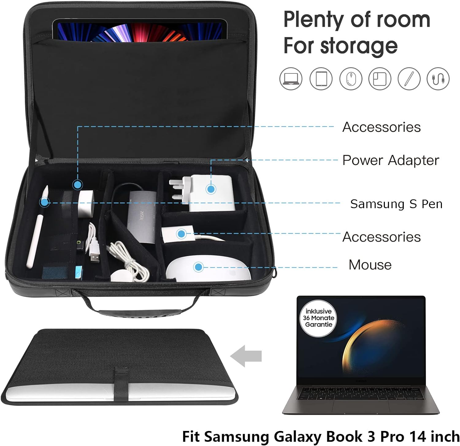 - KOMPATIBEL MIT: Oberes Fach für Samsung Galaxy Book 3 Pro 14zoll, Samsung Galaxy Tab S8/S7/S6/Tab A8/A7/Active Pro.