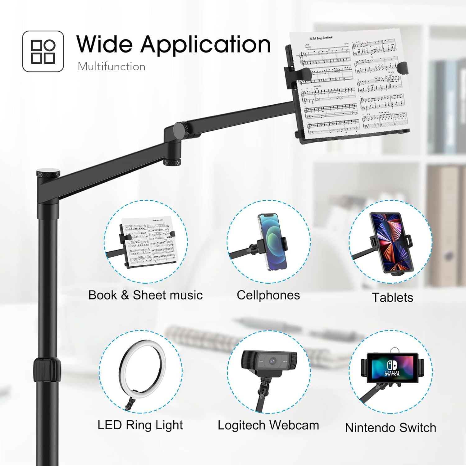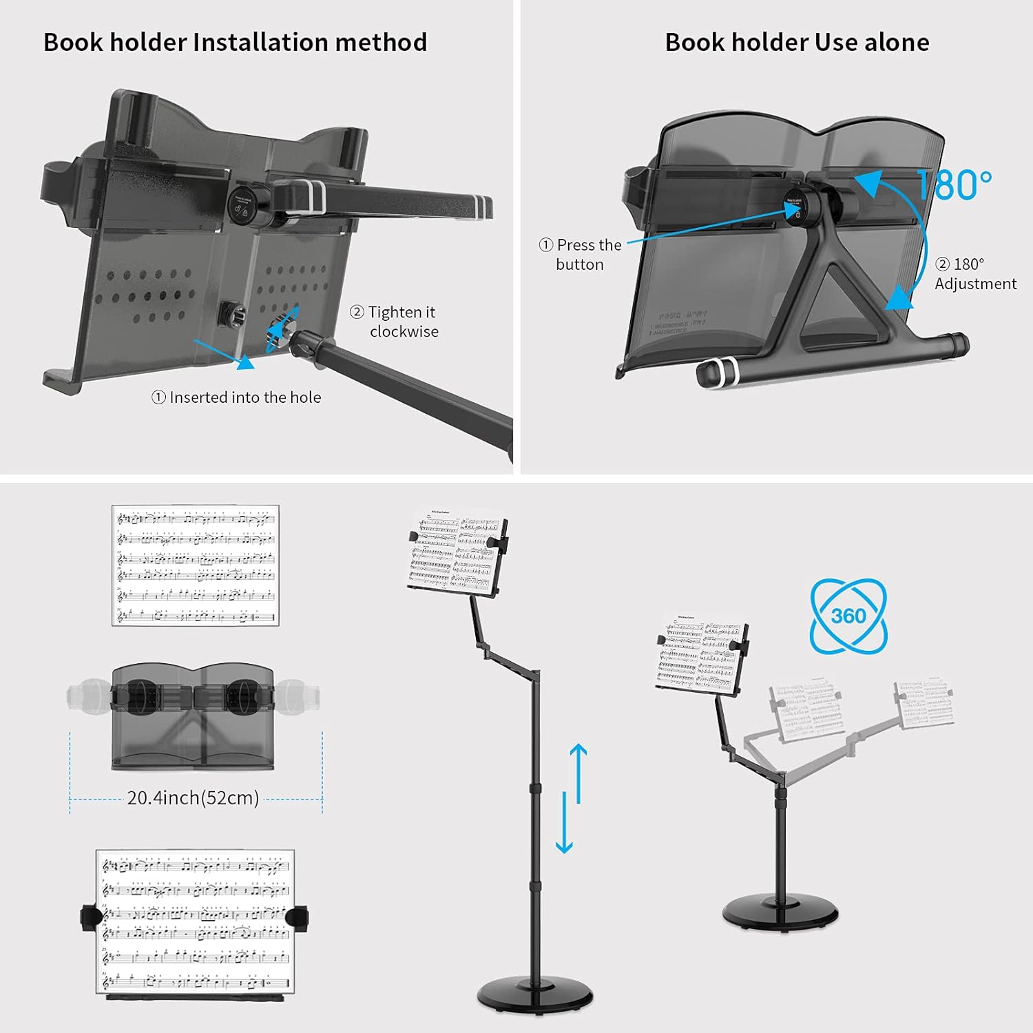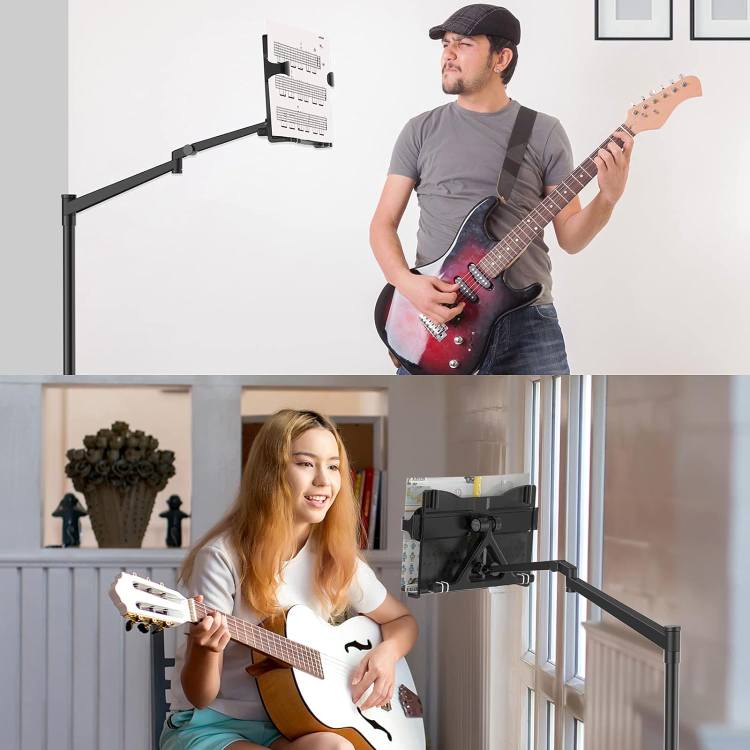 • ♬ Befreien Sie Ihre Hände: Dieser Bodenständer kann ein Buchbrett installieren, ideal für Gitarrenliebhaber, ermöglicht es Ihnen, Gitarre zu spielen, während Sie die Musikpartitur ansehen. Einfach zu bedienen, egal ob Sie stehen oder sitzen.