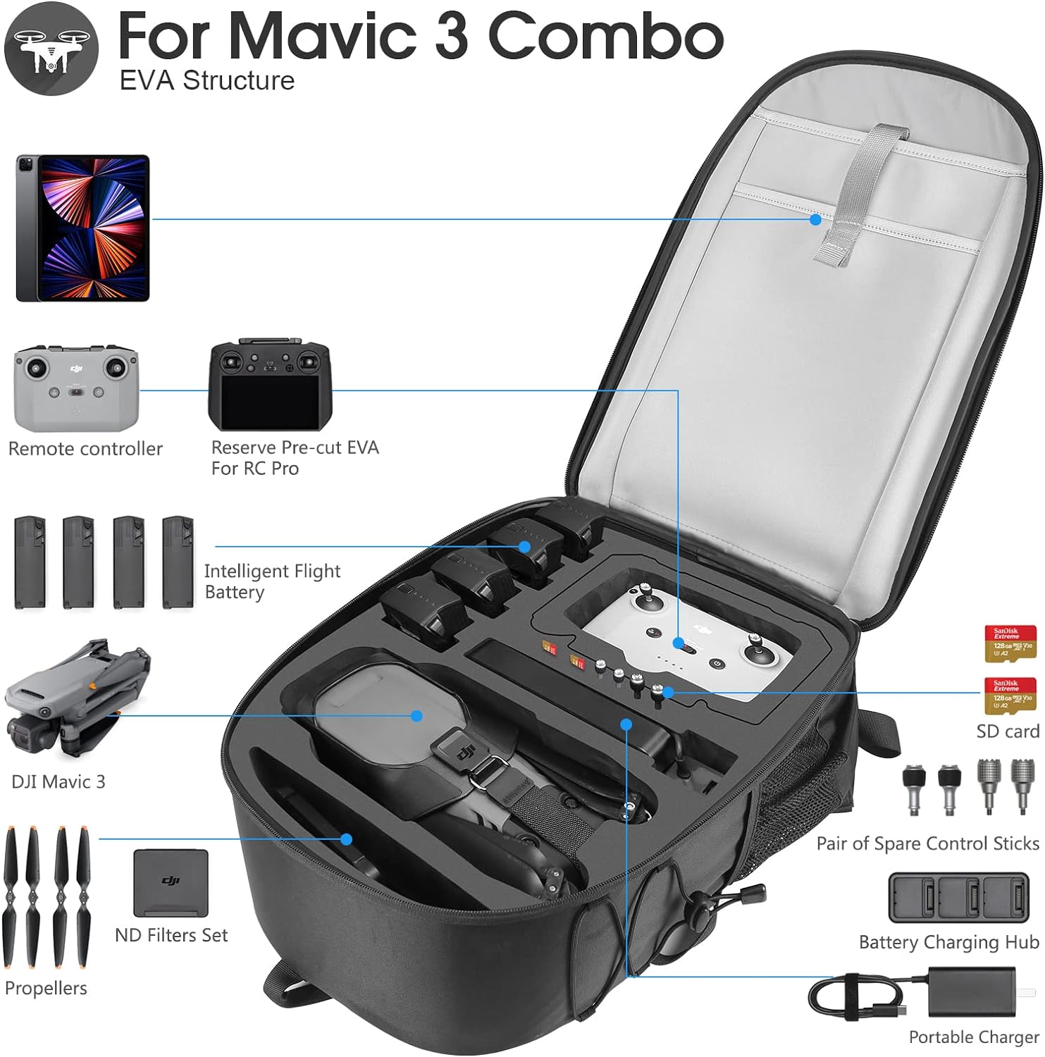 - 【Starker Schutz】Der DJI Mavic 3 Tragerucksack besteht aus hochfestem 1600D-Nylon und einer Innenfüllung aus einem vorgeschnittenen, massgeschneiderten EVA-Schaum. Halten Sie Ihre Mavic 3-Drohne und das Zubehör ordentlich platziert. Wasserdicht und staubdicht (IP67), kollisions- und kratzfest, schützen Sie Ihre Drohne und Ihr Zubehör vor Stössen und Stürzen.
