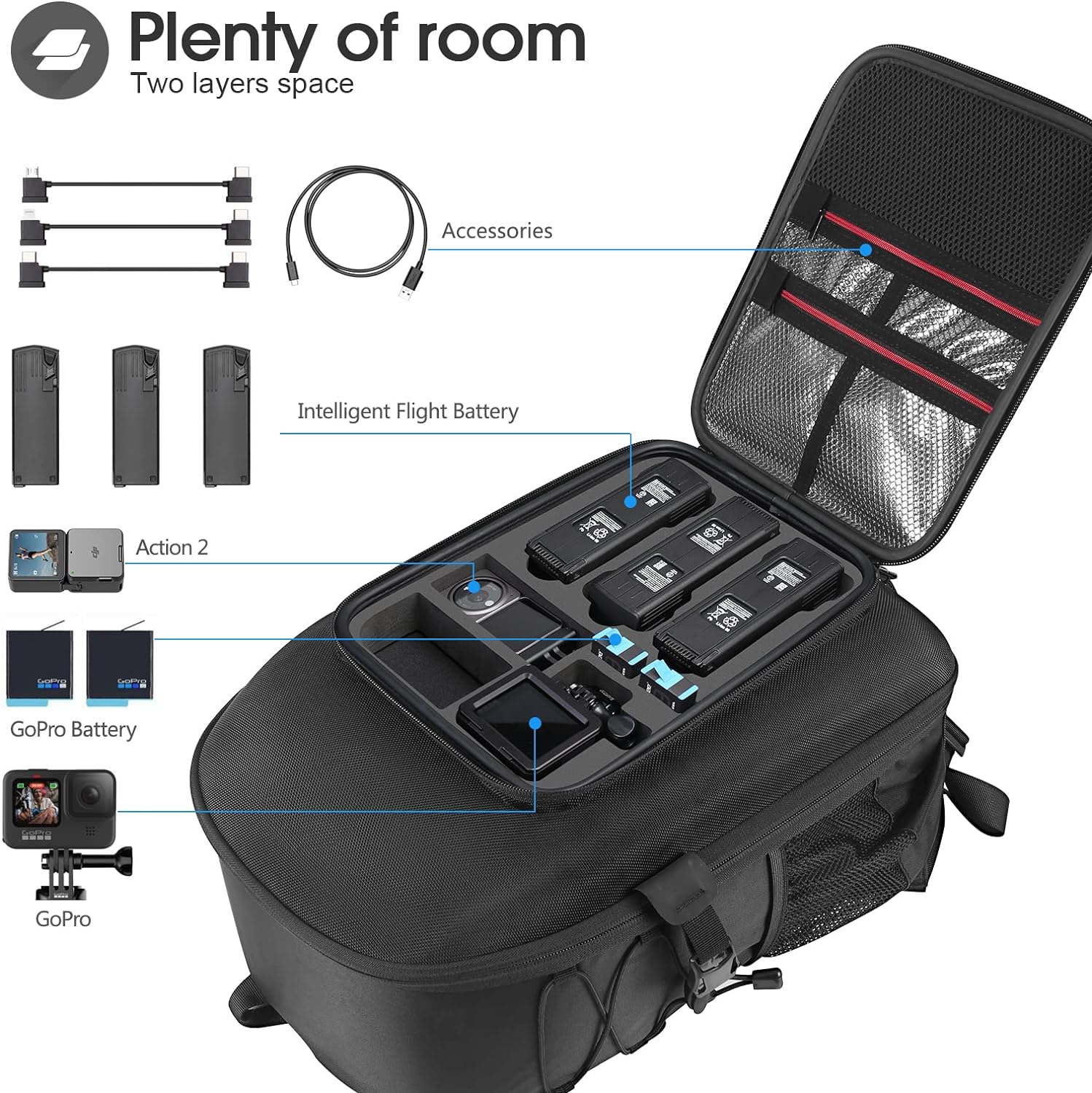 - 【Design to fit】Unser Smatree Rucksack kompatibel für DJI Mavic 3 Drone, Fernbedienung, Intelligent Flight Battery * 7, Action 2, Gopro, Gopro Battery * 2, Propeller, Akkuladestation, tragbares Ladegerät und Zubehör. Innentasche kann ein Tablet aufnehmen. HINWEIS: Wenn Sie ein Tablet tragen, legen Sie bitte den unteren Drohnenakku in den oberen leeren Raum.