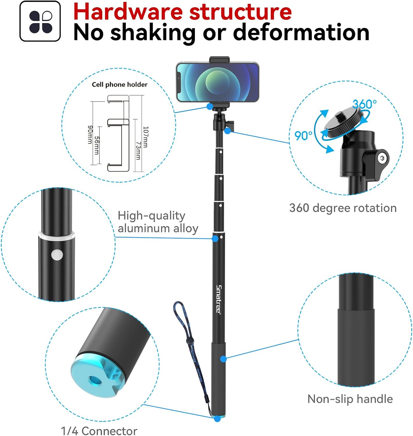 - 360-Grad-Rotationsdesign: Der flexible Kugelkopf bietet einen 360-Grad-Drehwinkel für Ihre Kamera und Ihr Mobiltelefon, um eine unterschiedliche beste Aufnahmeposition zu erhalten.