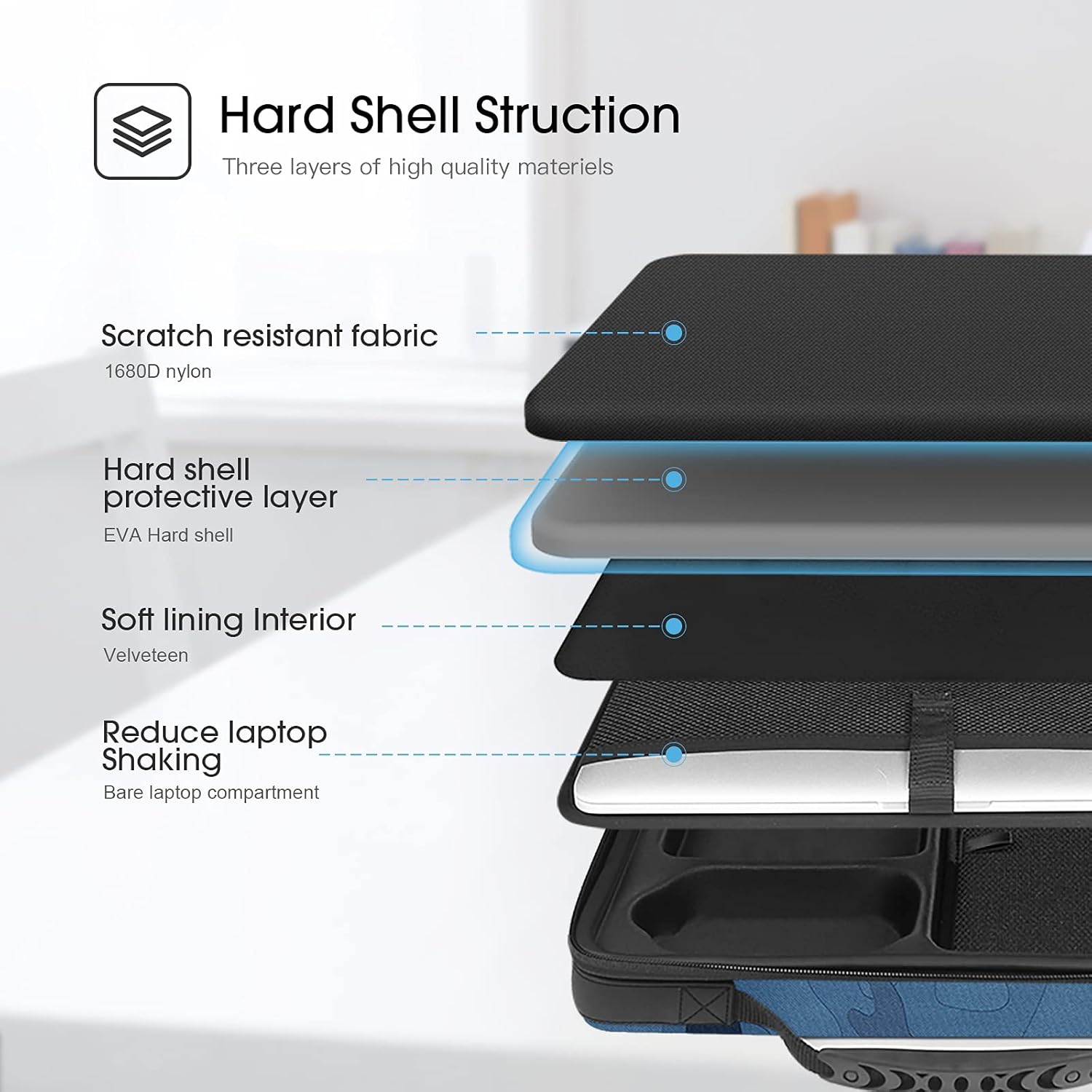 - AUSGEZEICHNETER SCHUTZ: Das harte EVA-Material an der Aussenseite schützt Ihr Macbook und Zubehör vor Stössen und Kollisionen, die Innentasche und das separate Fach schützen vor Kratzern. Hergestellt aus hochdichtem EVA-Material für dauerhaften und