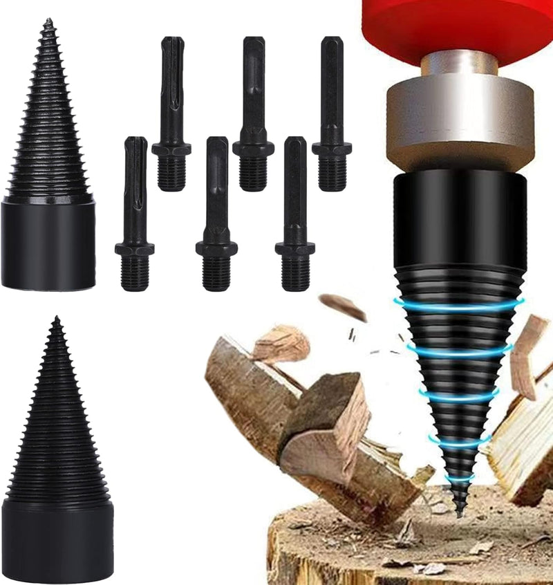 - Schlagfestigkeit und Abriebfestigkeit: Brennholz -Splitter -Bohrer bestehen aus Kohlenstoffstahl..Die lockere Härte bei hohen Temperaturen ist sehr stark..Der Holzsplitter -Schraubenkegel hat ein langes Lebensdauer, eine hohe Härte und eine starke