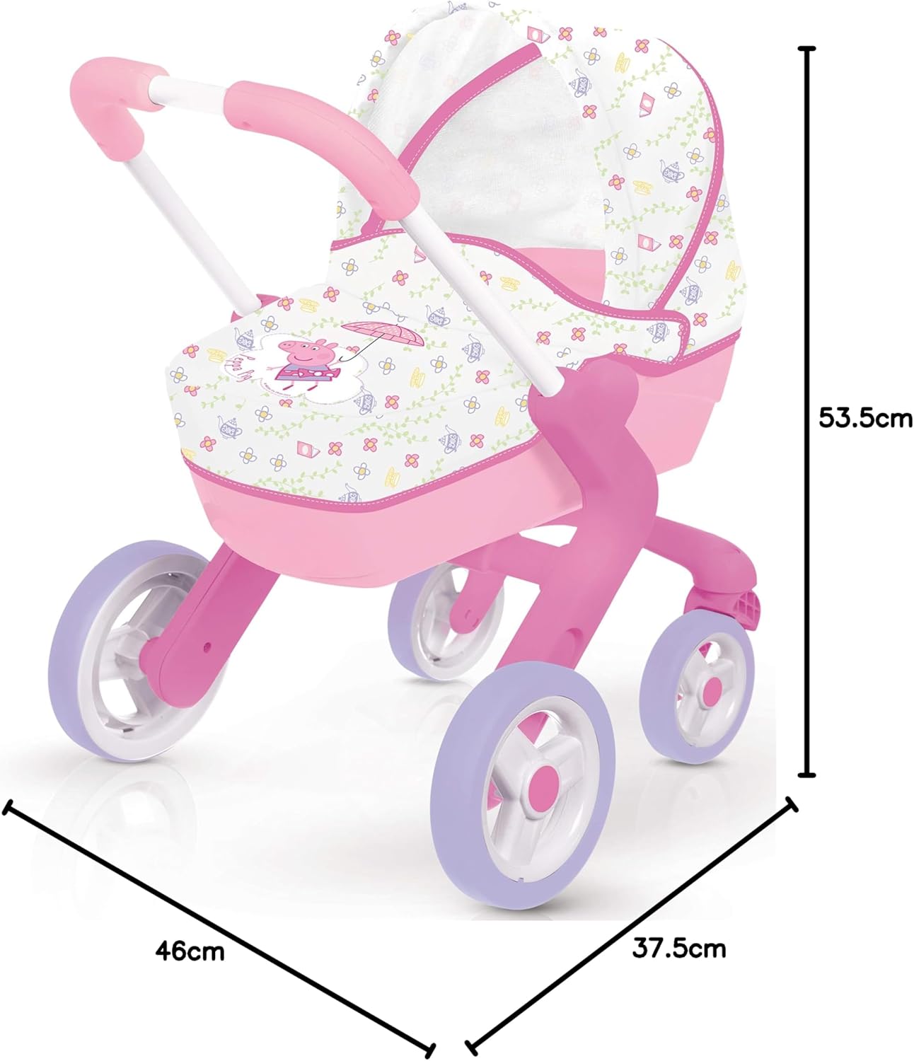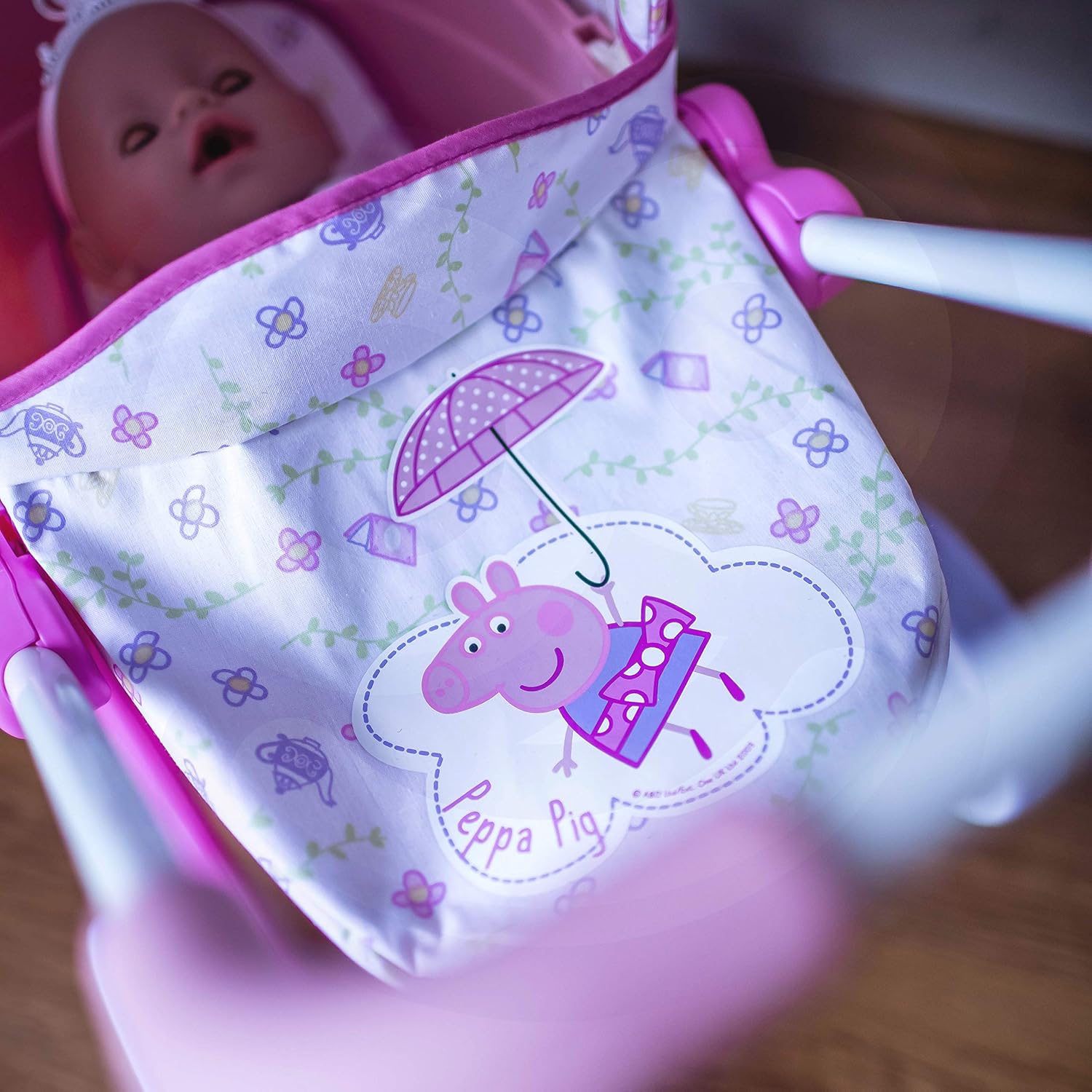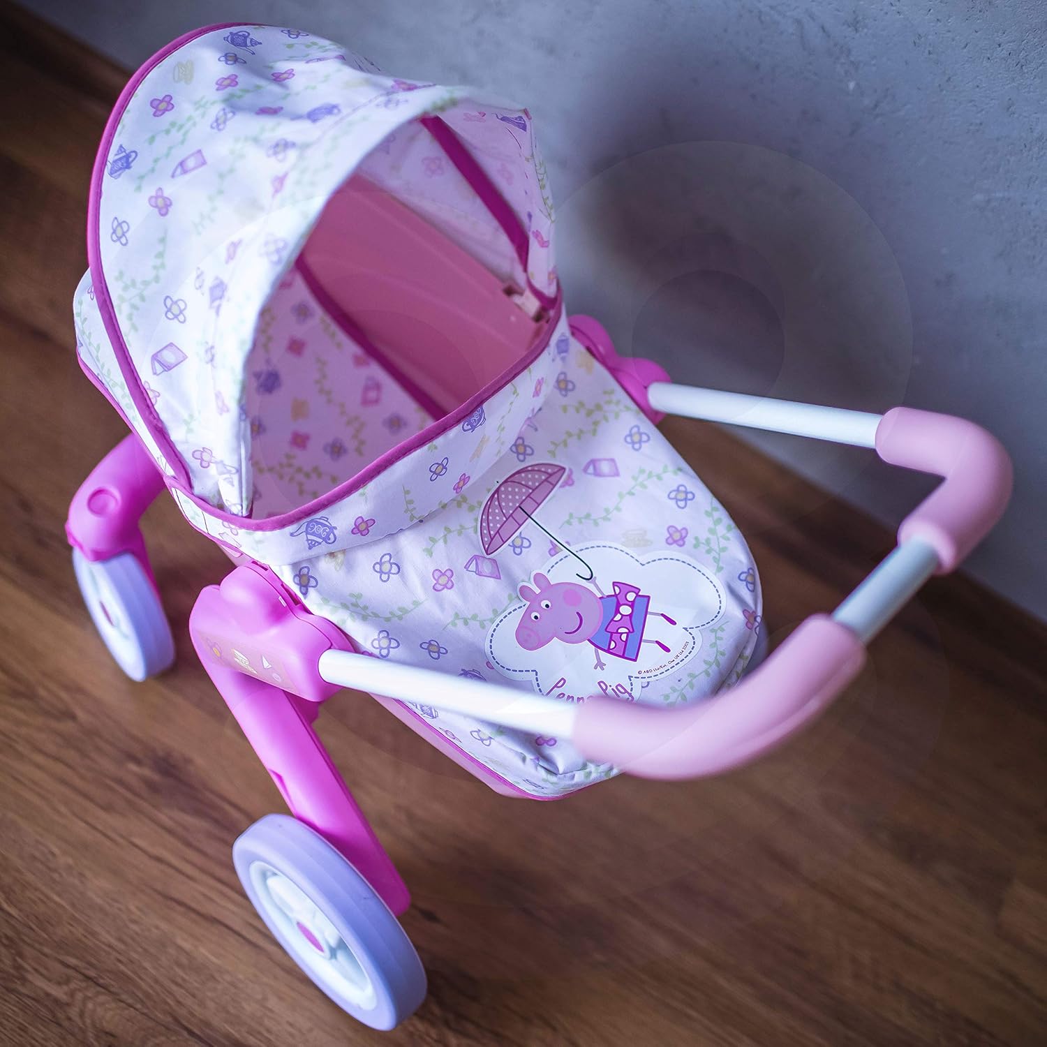 - Dieser hübsche Peppa Pig Kinderwagen ist perfekt, um deinr Babypuppe spazieren zu fahren. Er enthält Röhren aus Metall und eine Kunststoff-Babywanne mit Verdeck aus Stoff.