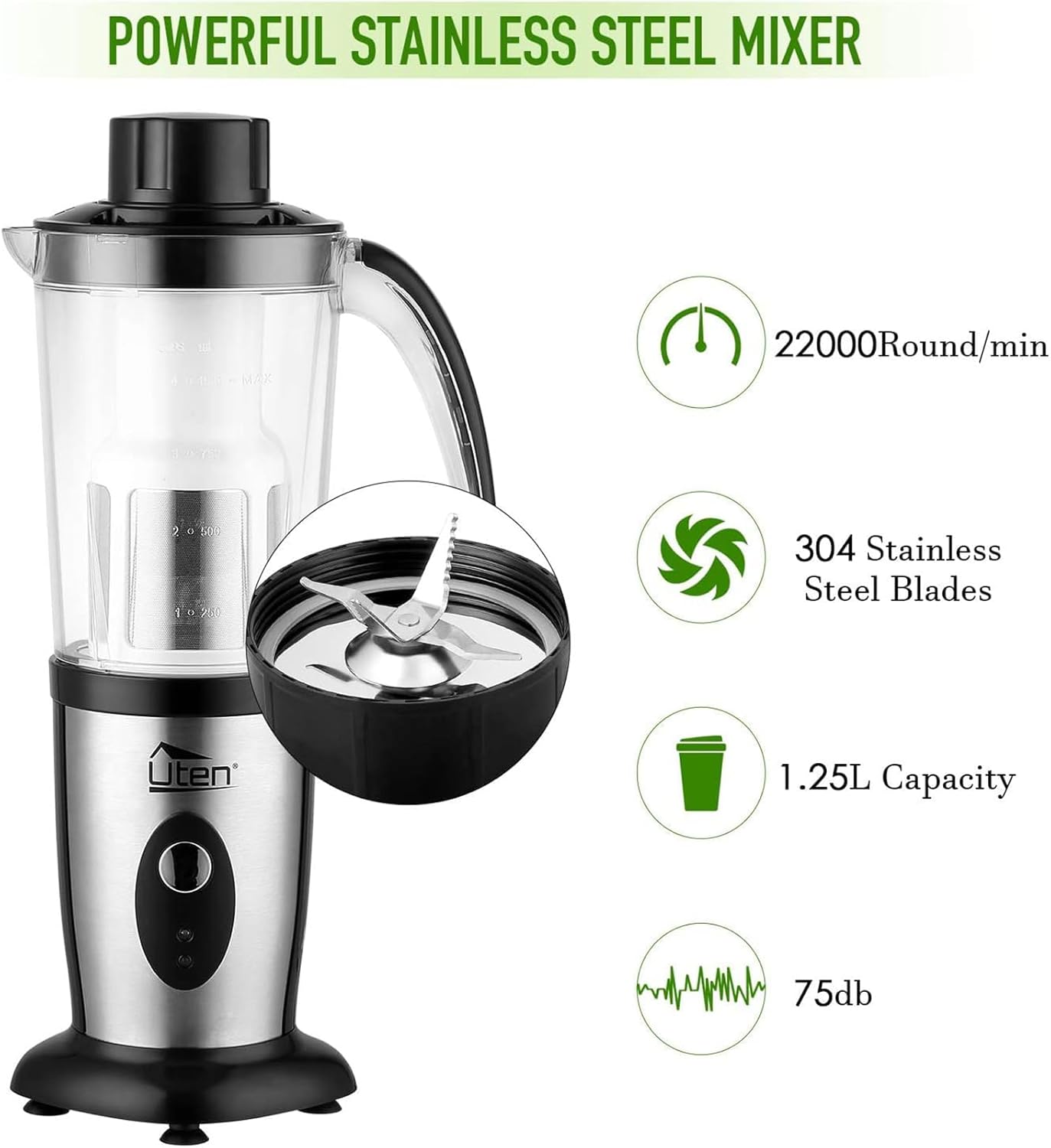 - Schnell und Kraftvoll --- Leistungsstarker 220 Watt Motor mit 22000 Umdrehungen pro Minute, scharfe Edelstahl-Messer für perfekte Eiszerkleinerung, Mischung und schnelle Zubereitung von Speisen. Auf diese weise können sie nahrhafte säfte herstellen in