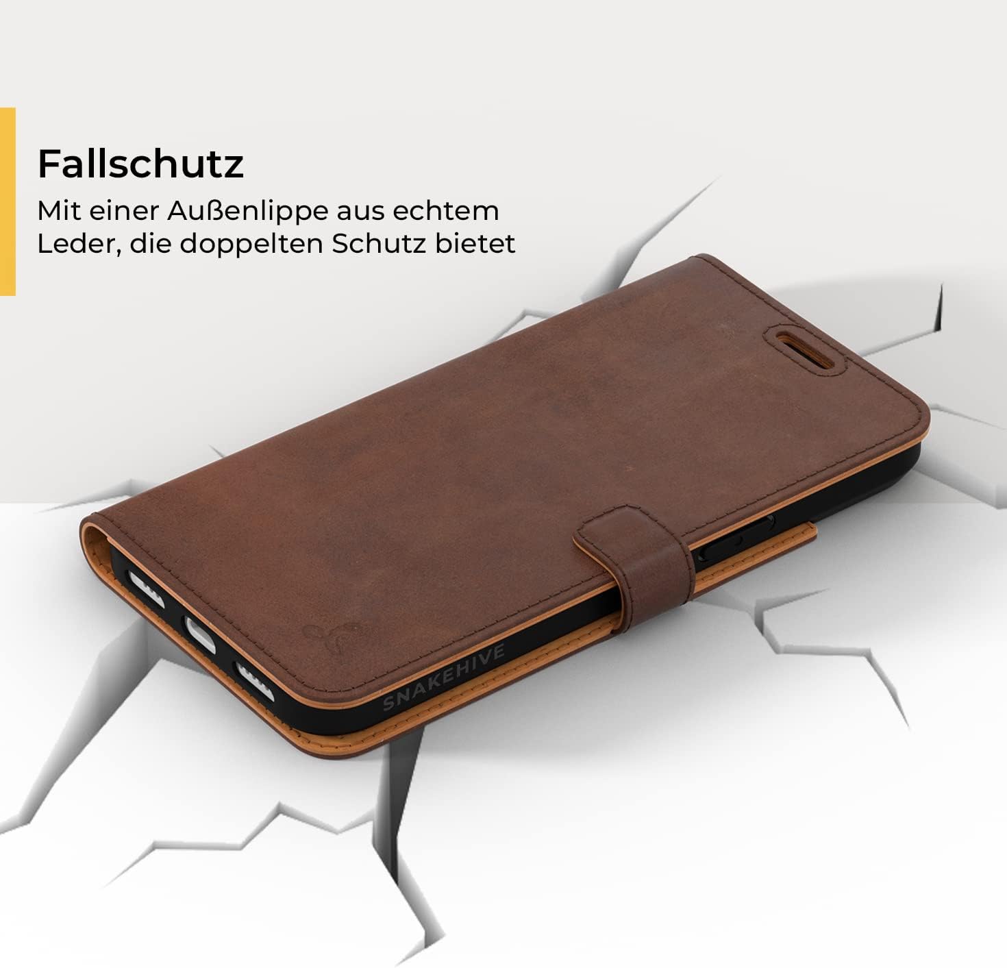 Snakehive iPhone 14 Plus Hülle Leder | Stylische Handyhülle mit Kartenhalter & Standfuss | Handyhüll