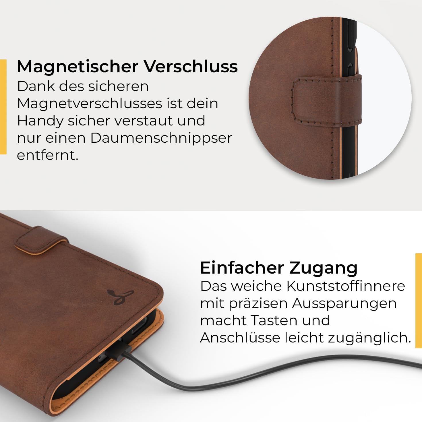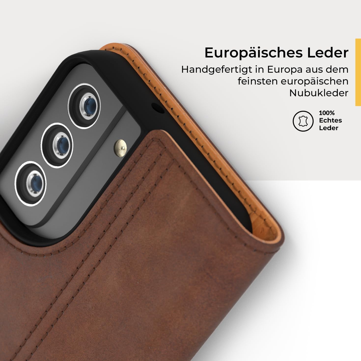 - KOMPLETTER RUNDUM SCHUTZ - Die Galaxy S22 5G Leder Case mit äusserer Lederlippe und flexible Innenseite schützt Dein Smartphone und den herausstehende Kamerabereich optimal vor Stürzen, Kratzern & Dreck