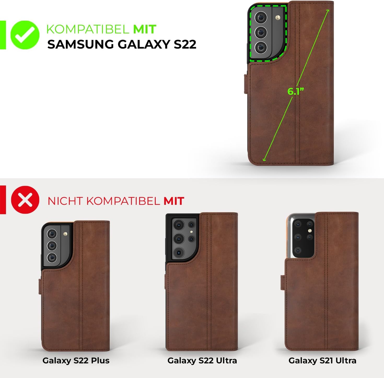 - GALAXY S22 5G HANDYHÜLLE - Mit unserer Handyhülle erhältst Du eine stylische Galaxy S22 5G Lederhülle zum Schutz deines Smartphones. Die Schutzhülle ist nur mit dem Galaxy S22 5G mit 6.1" Display kompatibel