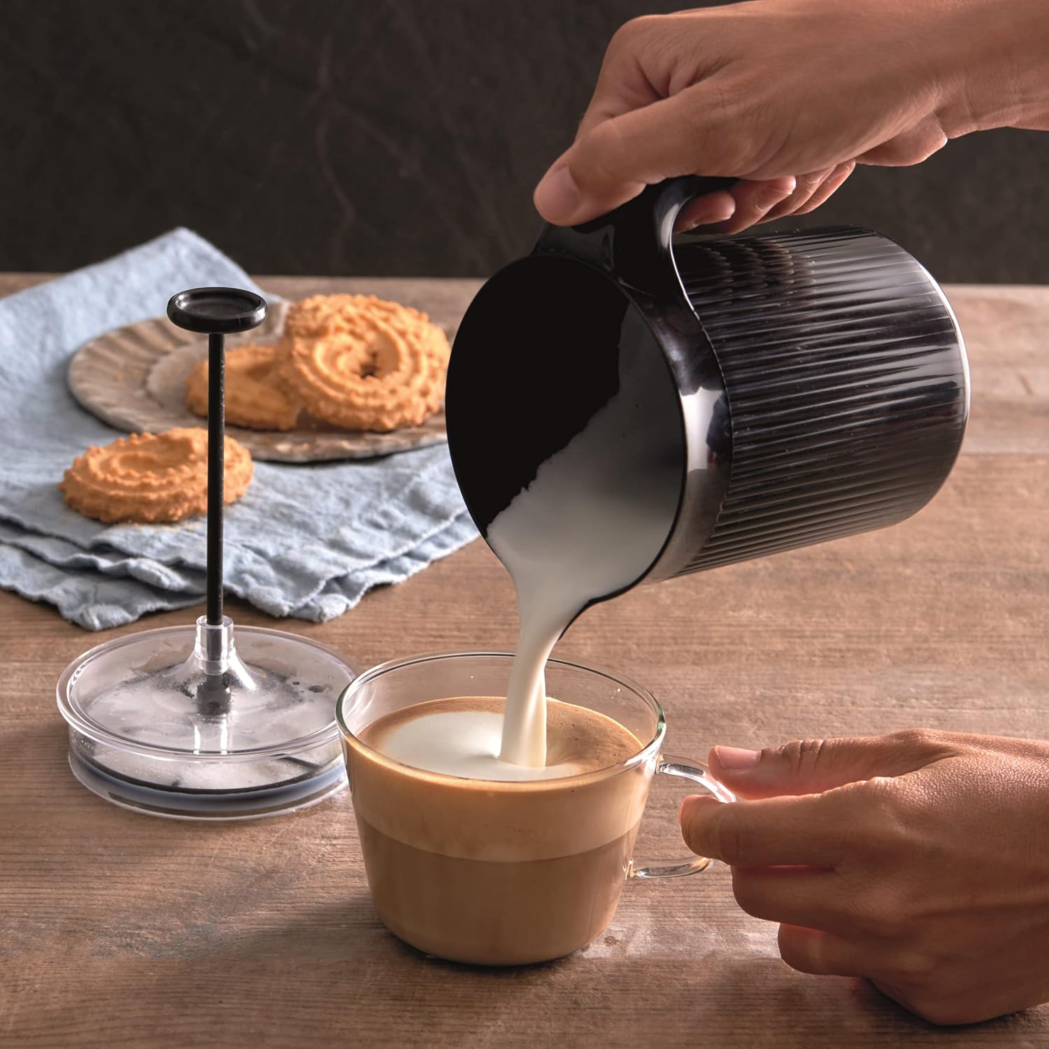 - Vielseitig - Dieser manuelle Milchschäumer ist für jede Milchsorte geeignet, einschliesslich Soja-, Hafer- und Mandelmilch, und erzielt professionelle Ergebnisse. Auch für den Camping- und Herdgebrauch geeignet.