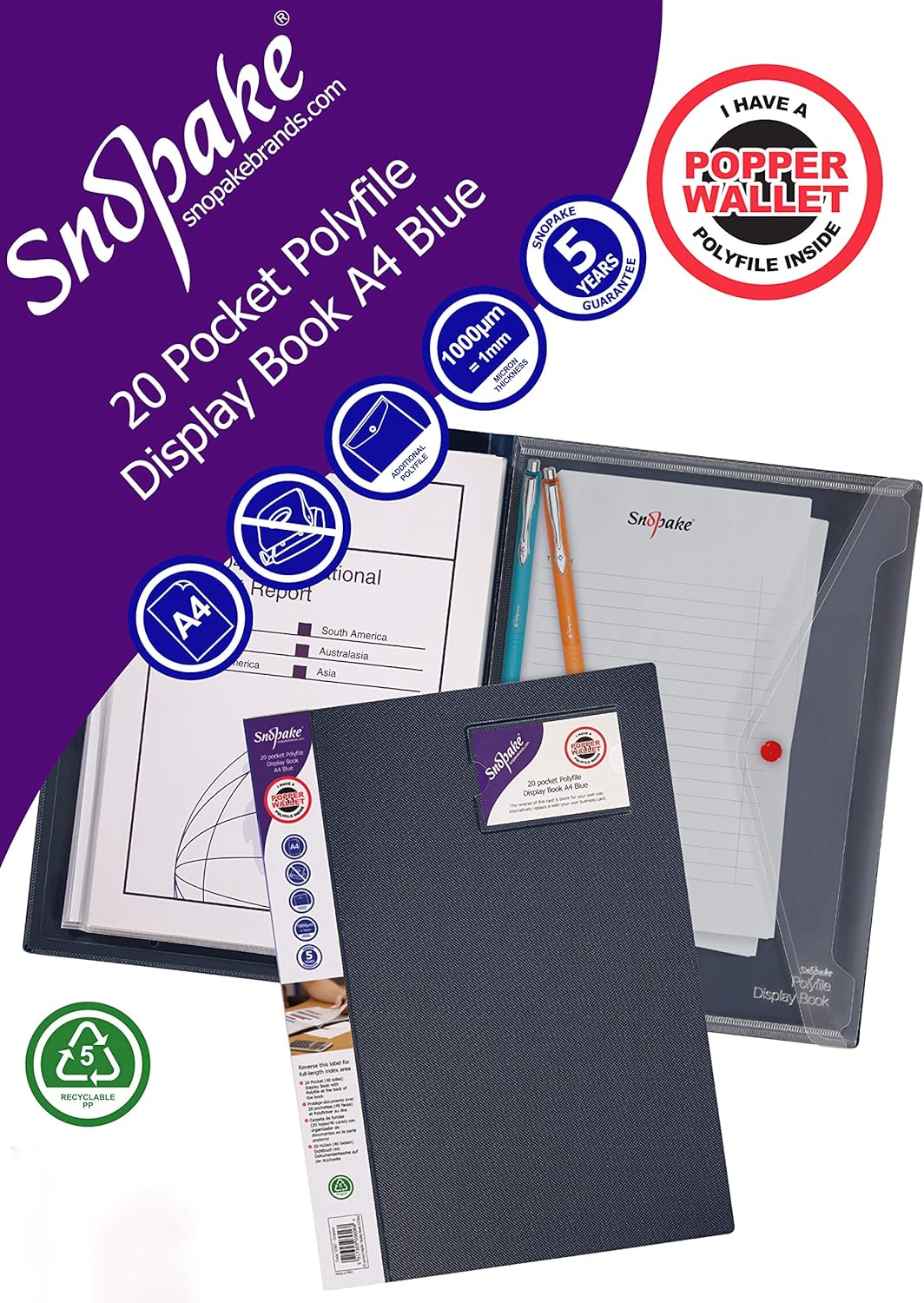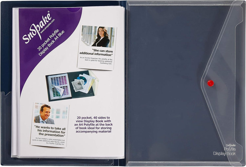 - A4 Snopake Polyfile auf der Innenseite der Rückseite verschweisst, ideal für die Aufbewahrung von Begleitmaterial und zusätzlichem losem Papier