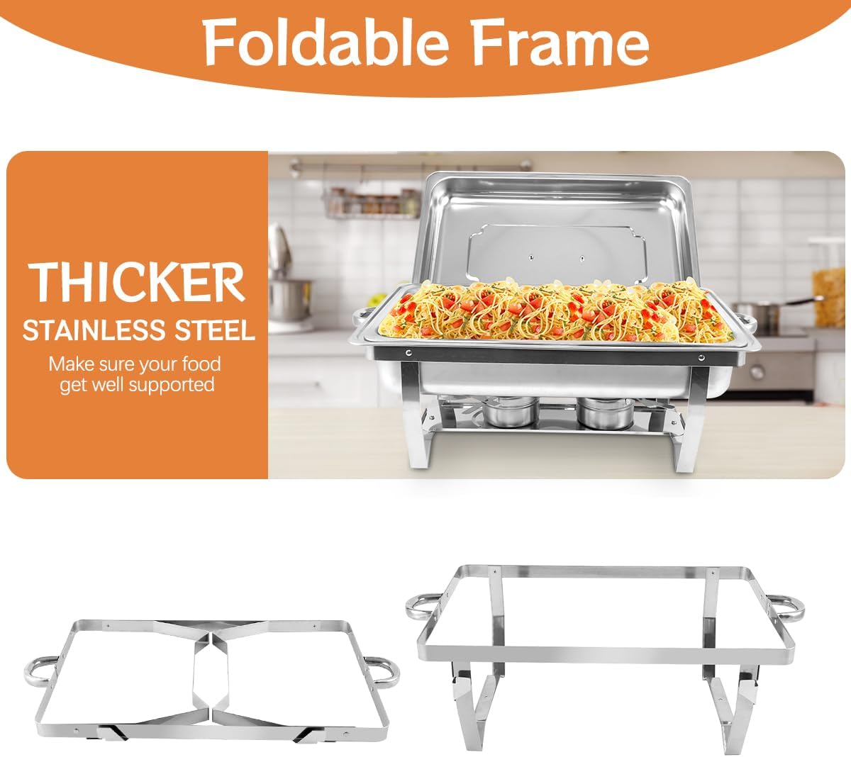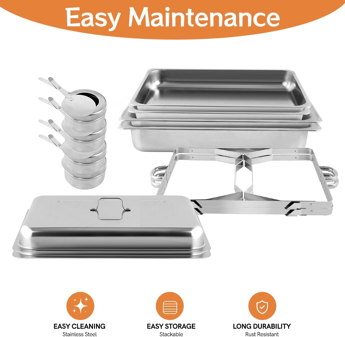 - Langlebiger Edelstahl --- Unsere Chafing Dish Set sind aus hochwertigem, lebensmittelechtem Edelstahl gefertigt und zeichnen sich durch Langlebigkeit und Korrosionsbeständigkeit aus. Die eleganten hochglanzpolierten Oberflächen lassen Ihr Bankett