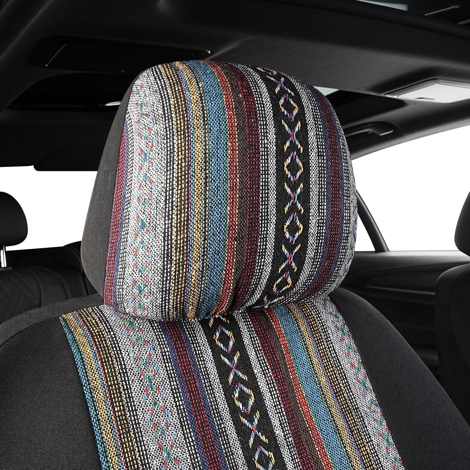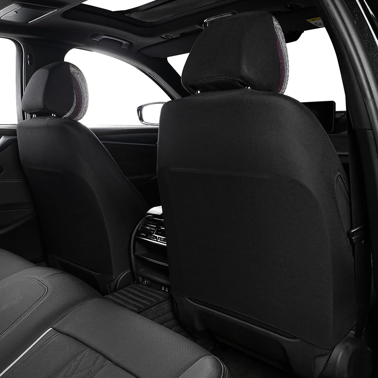 - Dehnbarer Rückenstoff,Bitte schneiden Sie ein kleines Loch in den Rücksitzbezug für die Kopfstützenabdeckung