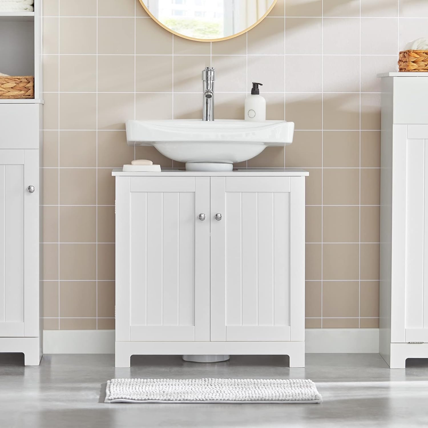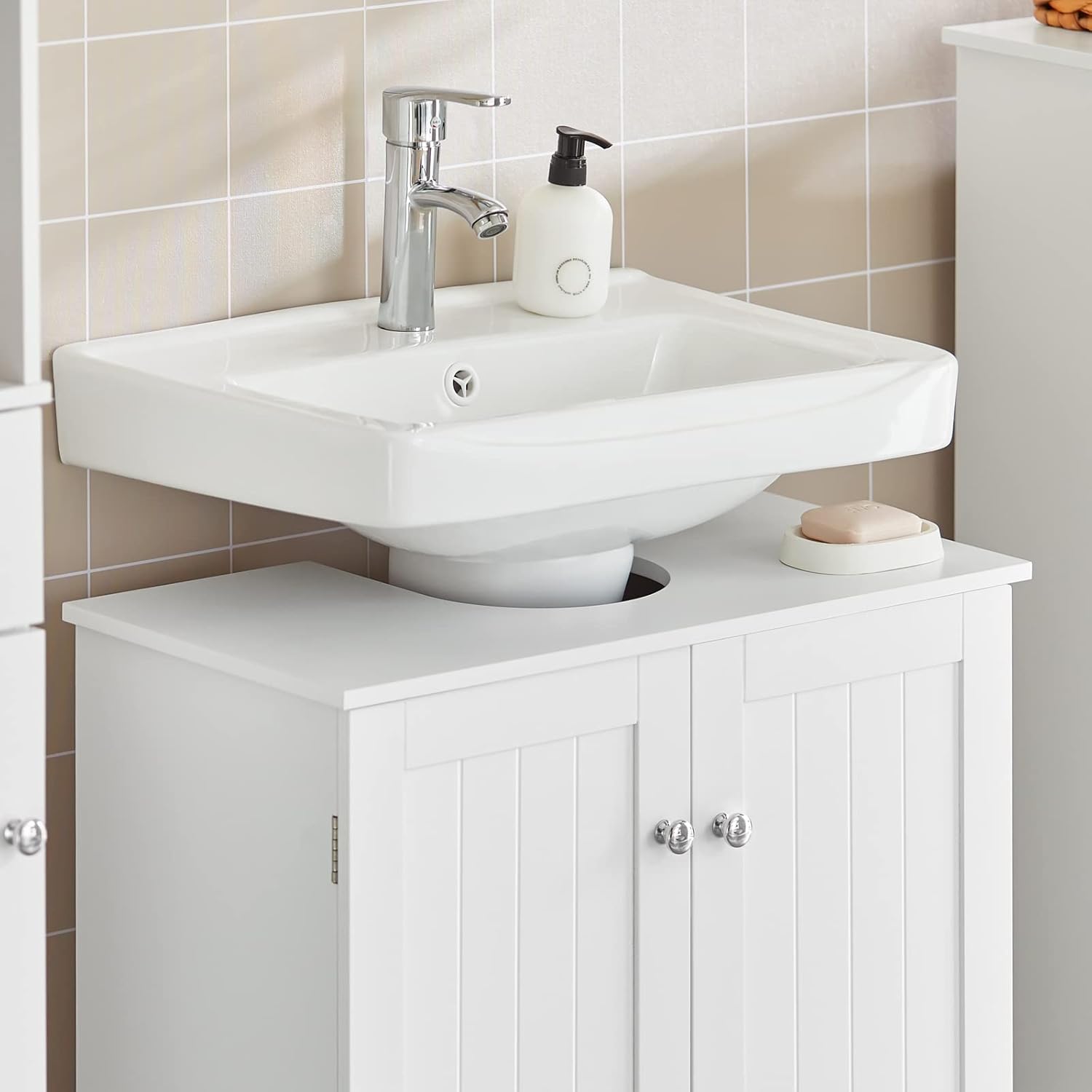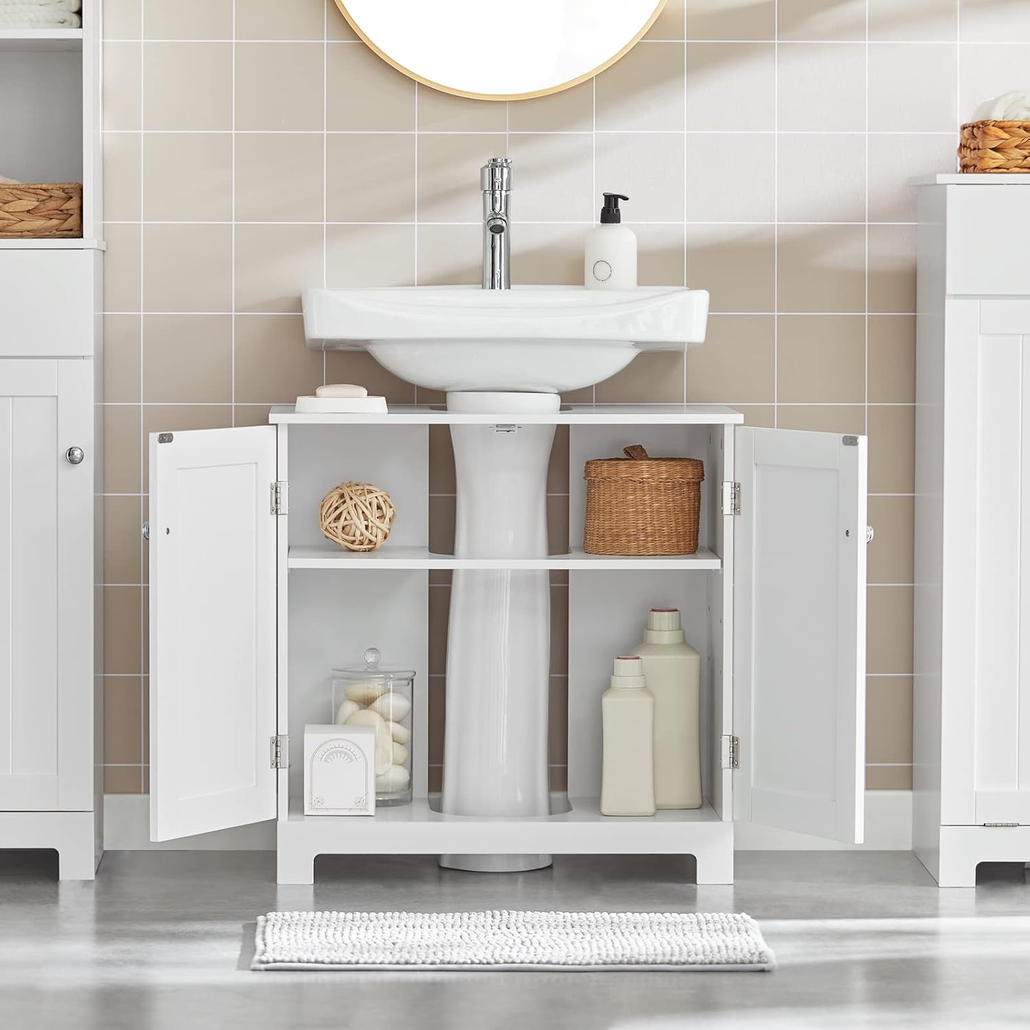 - 2 Fächer hinter den Türen, Handtücher, Toilettenpapier und andere Badutensilien darin werden vor Staub, Wasser und ungewollten Blicken geschützt; höhenverstellbarer Einlegeboden