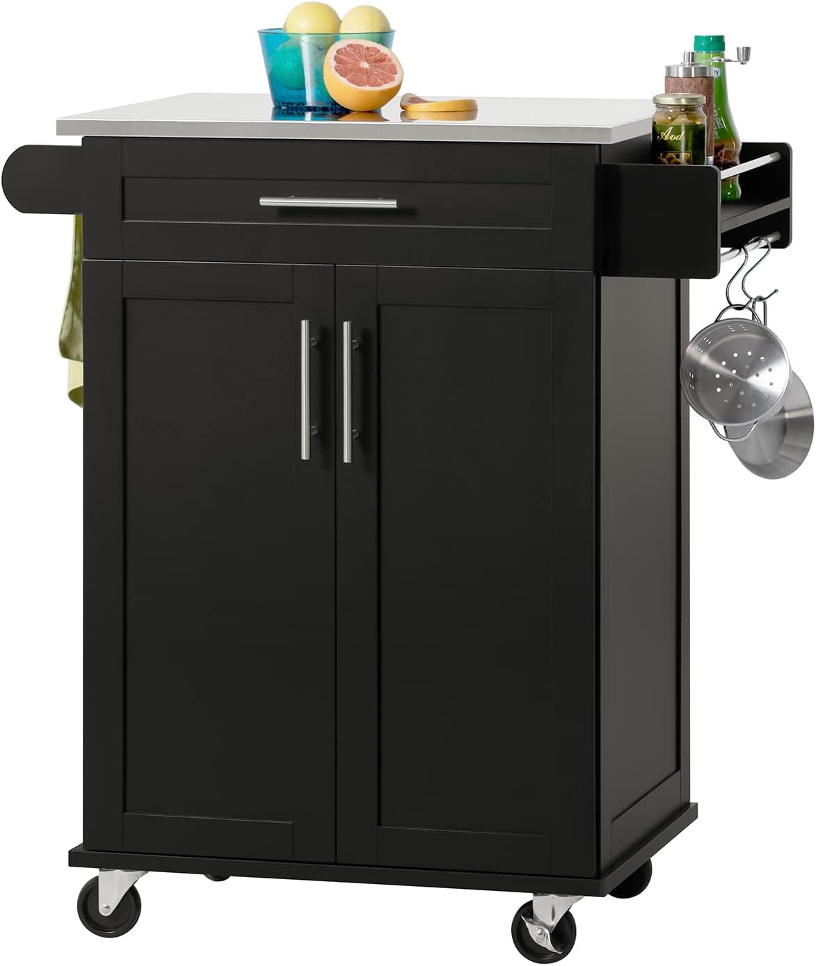 - Dieser Küchenwagen verfügt über zwei Türen und eine Schublade, wo Sie viele Utensilien verstauen können. Der Einlegeboden hinter der Tür ist höhenverstellbar.