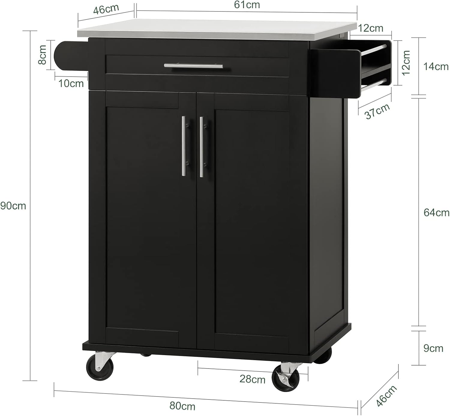 - Dank der 4 hochwertigen Räder (zwei mit Stopper) können Sie den Küchenwagen an einem Ort abstellen oder ihn mühelos durch die Wohnung rollen.