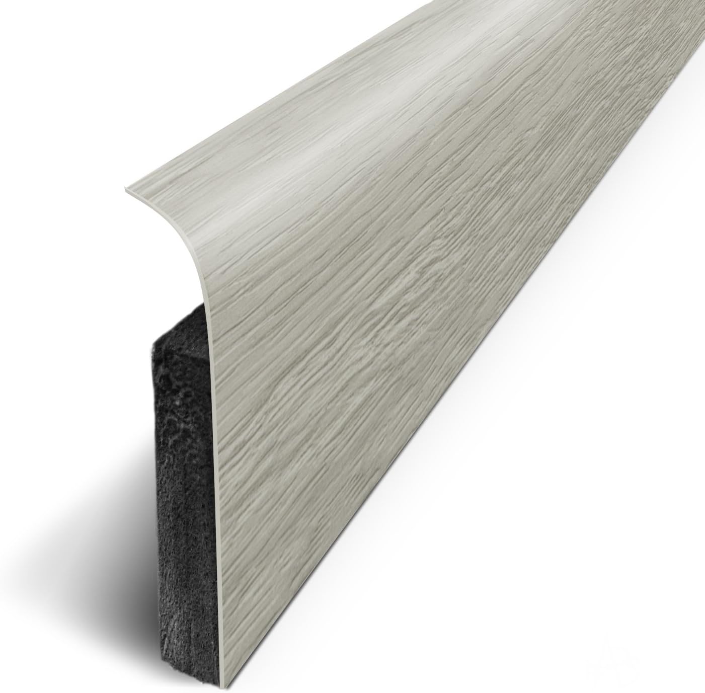 - Die Sockelleisten bestehen aus einem Schaumstoff, der mit einer dekorativen Folie überzogen ist, und sind flexibel, um sich an die Unregelmässigkeiten der Wände anzupassen.