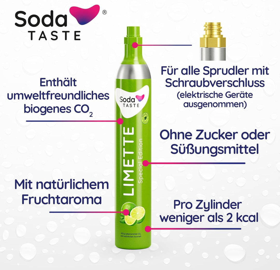 SodaTASTE CO2-Tauschzylinder (Refill) für Wassersprudler, mit natürlichem Limetten-Aroma, ohne Sirup
