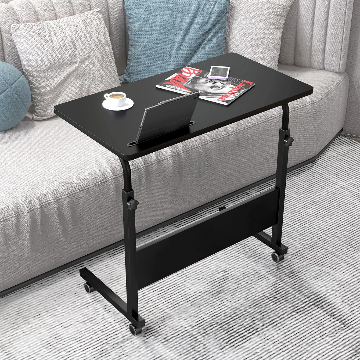 - 【Vielseitig einsetzbar:】Der Beistelltisch steht in C-Form, es ermöglicht, den Tisch unter Sofas, Sessel und Betten platzsparend zu verstauen; Nicht nur als Laptoptisch, sondern auch als Couchtisch, Pflegetisch, Esstisch, Beistelltisch für Snacks,