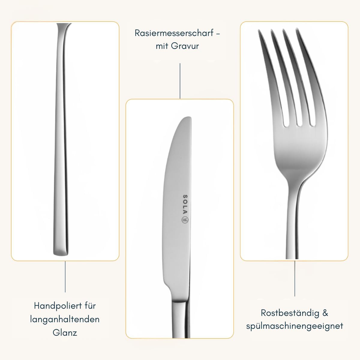 - GARANTIE | Sola gewährt auf seine Bestecksets eine 10-jährige Garantie auf Material- und Herstellungsfehler.