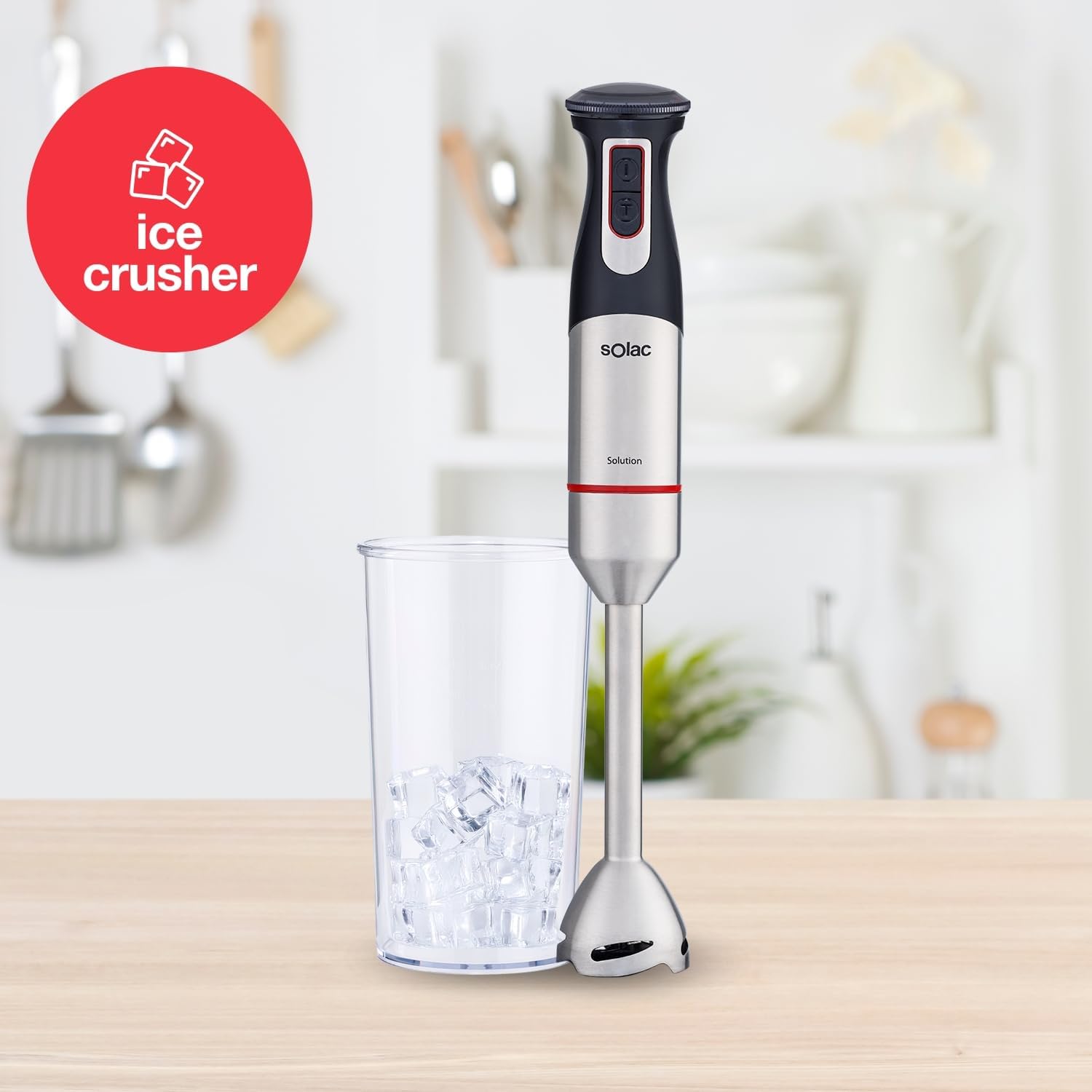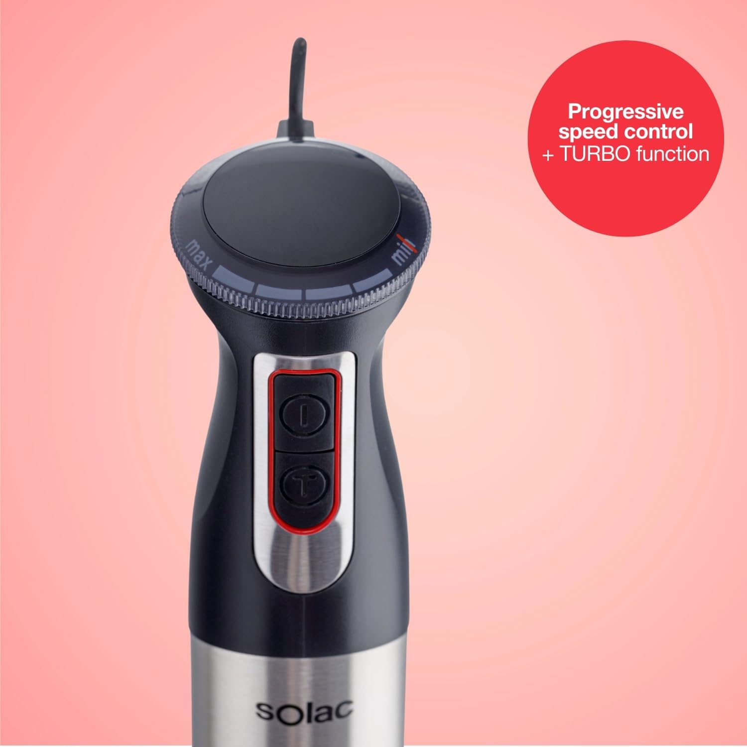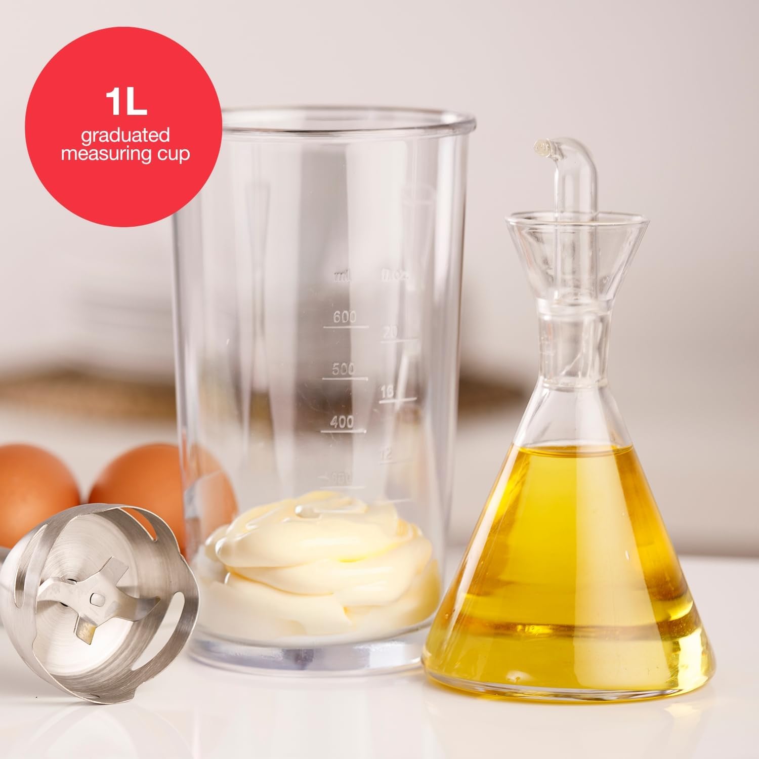 - Stabmixer 1200 W, mit progressivem Geschwindigkeitsregler, Turbofunktion, Spritzschutzhaube, Klingen aus hochfestem Edelstahl, inklusive Messbecher.