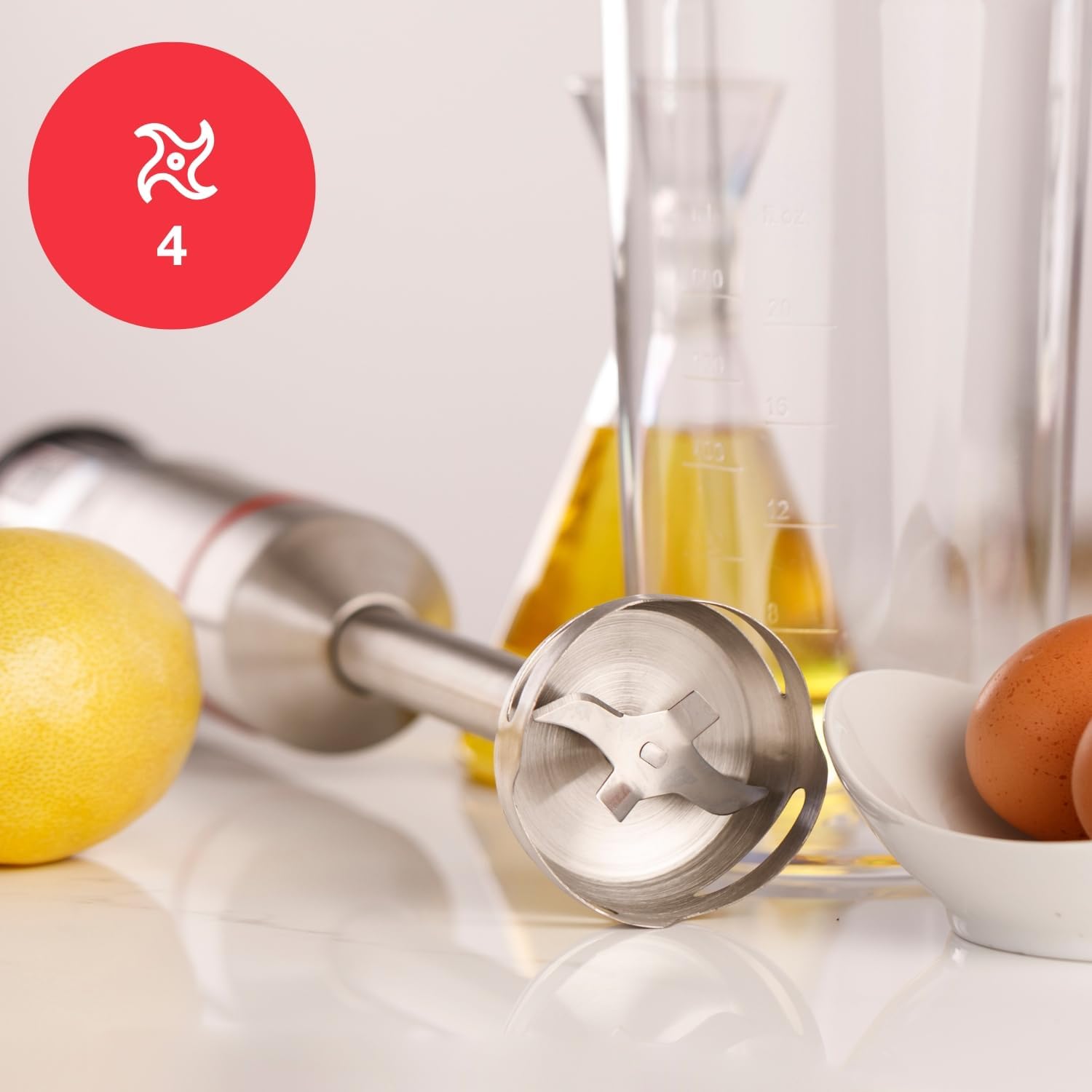 - Stabmixer mit 1200 W Leistung, der alle Arten von Lebensmitteln zerkleinert und die besten Mischungen herstellt.