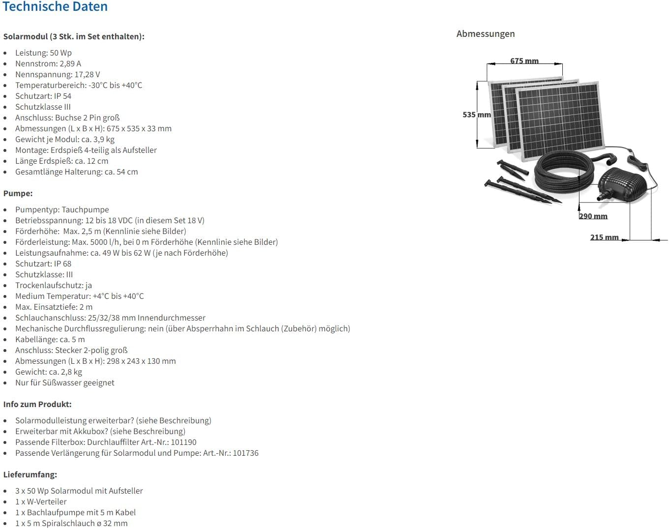 - Pumpe arbeitet im Direktbetrieb! Je nachdem wieviel Sonne auf das Modul scheint pumpt die Pumpe Wasser. Leistungsdiagramm bei den Bildern enthalten!