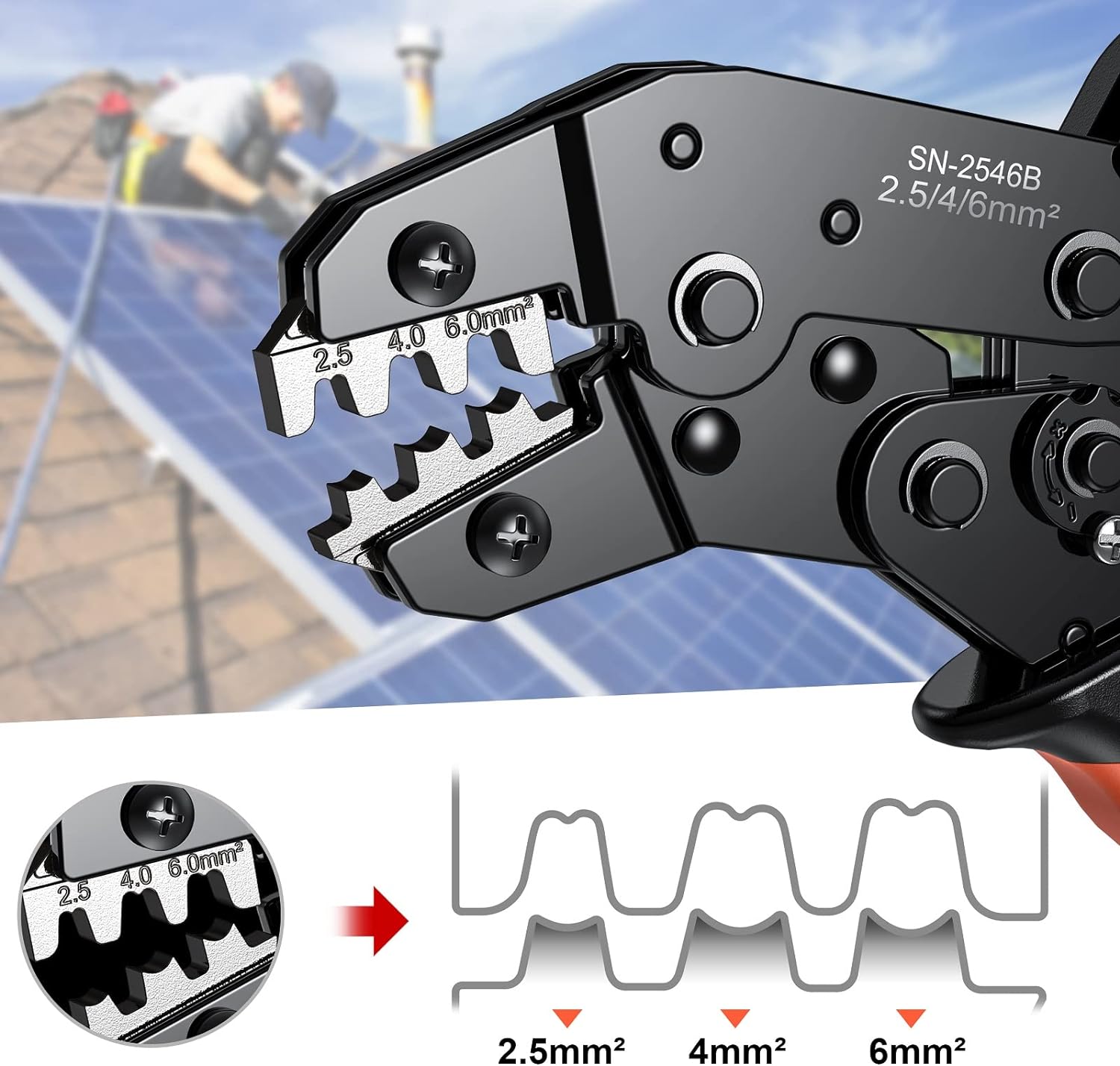 - 【Crimpbereich der Solarstecker Crimpzange】Die Solar Crimpzange ist für 2,5/4,0/6,0 mm² Solarpanel-Kabelstecker geeignet.