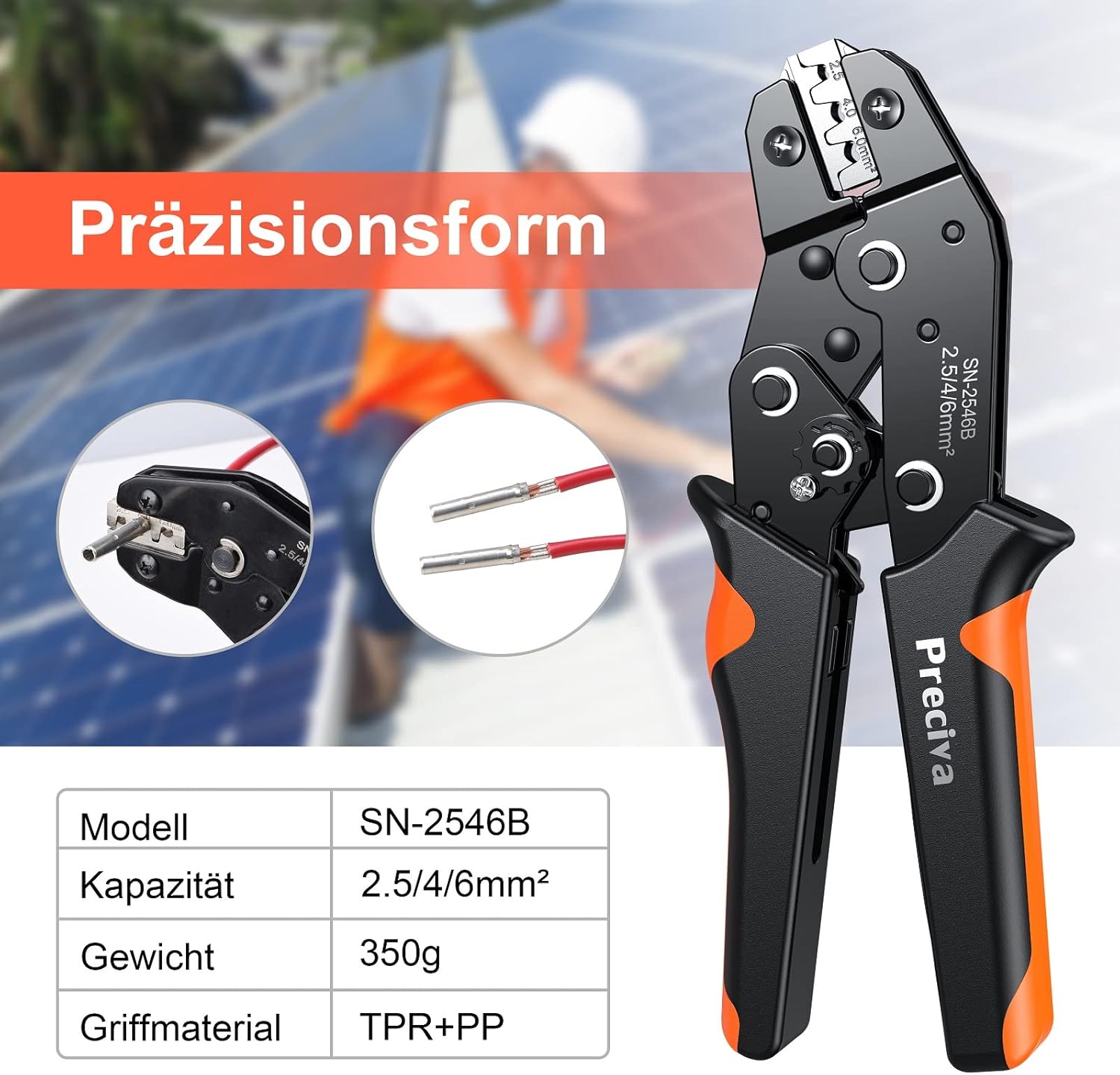 - 【Warum Preciva Solar Crimpzange wählen】Nach zahlreichen Anpassungen und Verbesserungen streben wir danach, den besten Crimpeffekt und das bequemste Nutzungsgefühl zu erzielen und unseren Kunden die besten Qualitätsprodukte zu bieten.